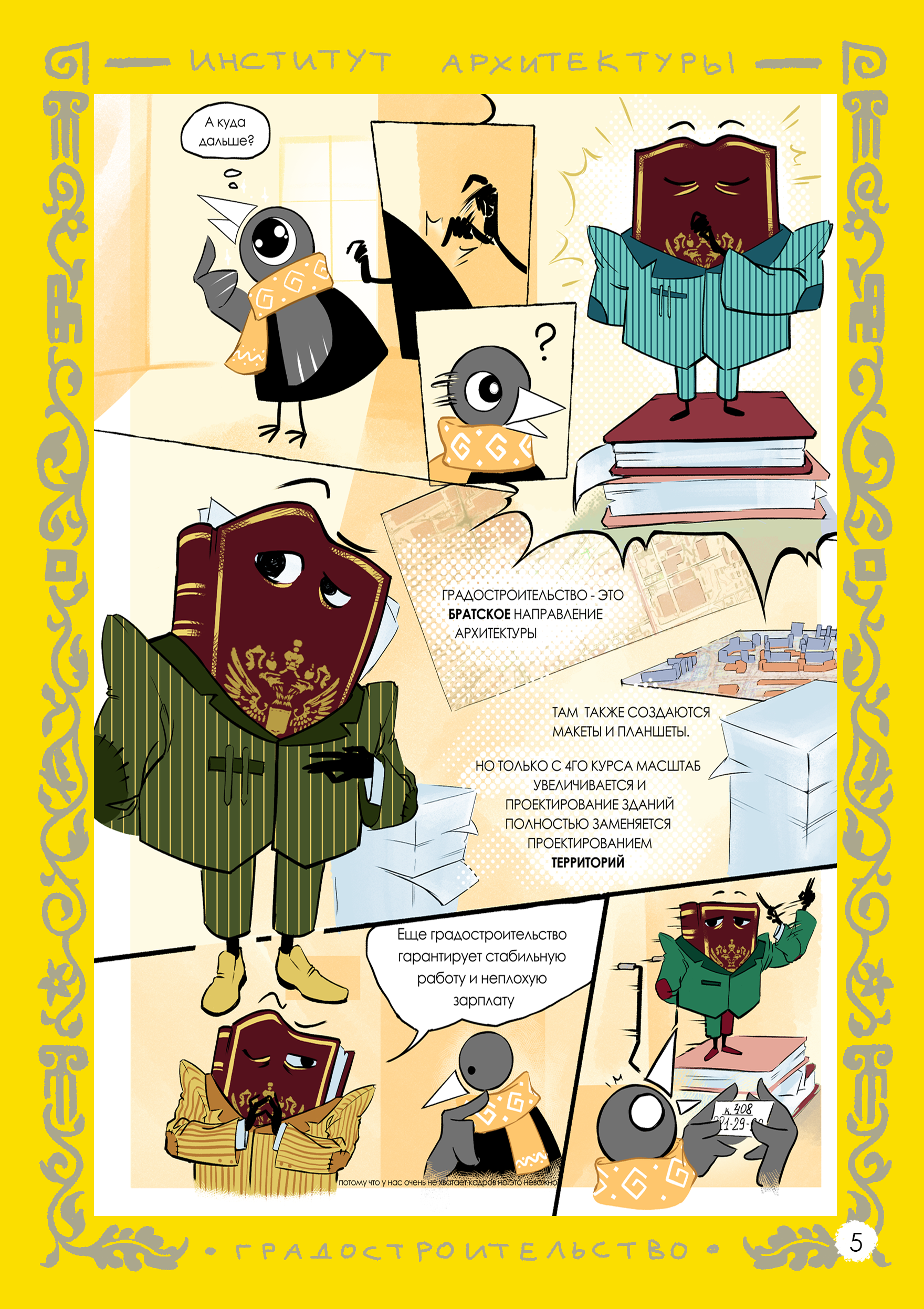 База проекта - уникальный продукт Комикс-клуба УрГАХУ: комикс для абитуриентов. В комиксе каждый герой представляет одну из специальностей УрГАХУ. Проект - это комплексная профориентационная кампания: