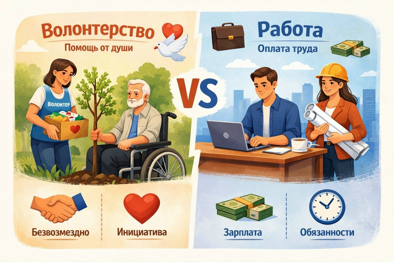 В Автономной некоммерческой организации «Центр поддержки добровольческих инициатив ПумБиКО» мы считаем важным, чтобы каждый волонтёр чётко понимал, в каких отношениях он участвует, на что может рассчитывать и как выстроена наша совместная работа. Ниже мы подробно разбираем ключевые различия между добровольчеством и трудом, а также наши принципы организации проектов.