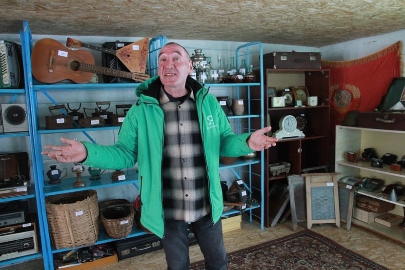 В коллекции музея - старинные утюги, маслобойки (которые до сих пор пахнут молоком!), самодельные игрушки, патефон, который играет, и предметы быта советского времени. Вещи попадают сюда от жителей села и друзей.