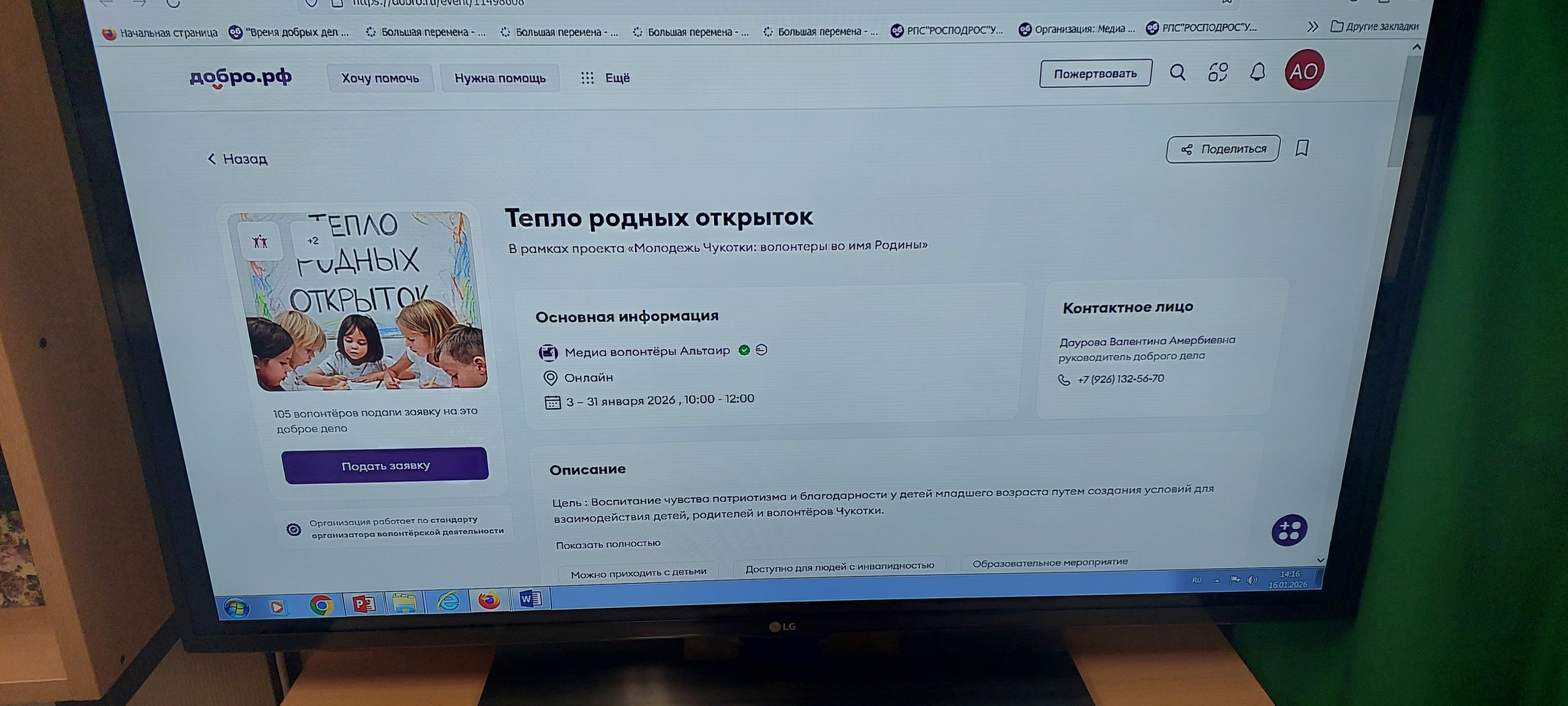 волонтёров в организации—