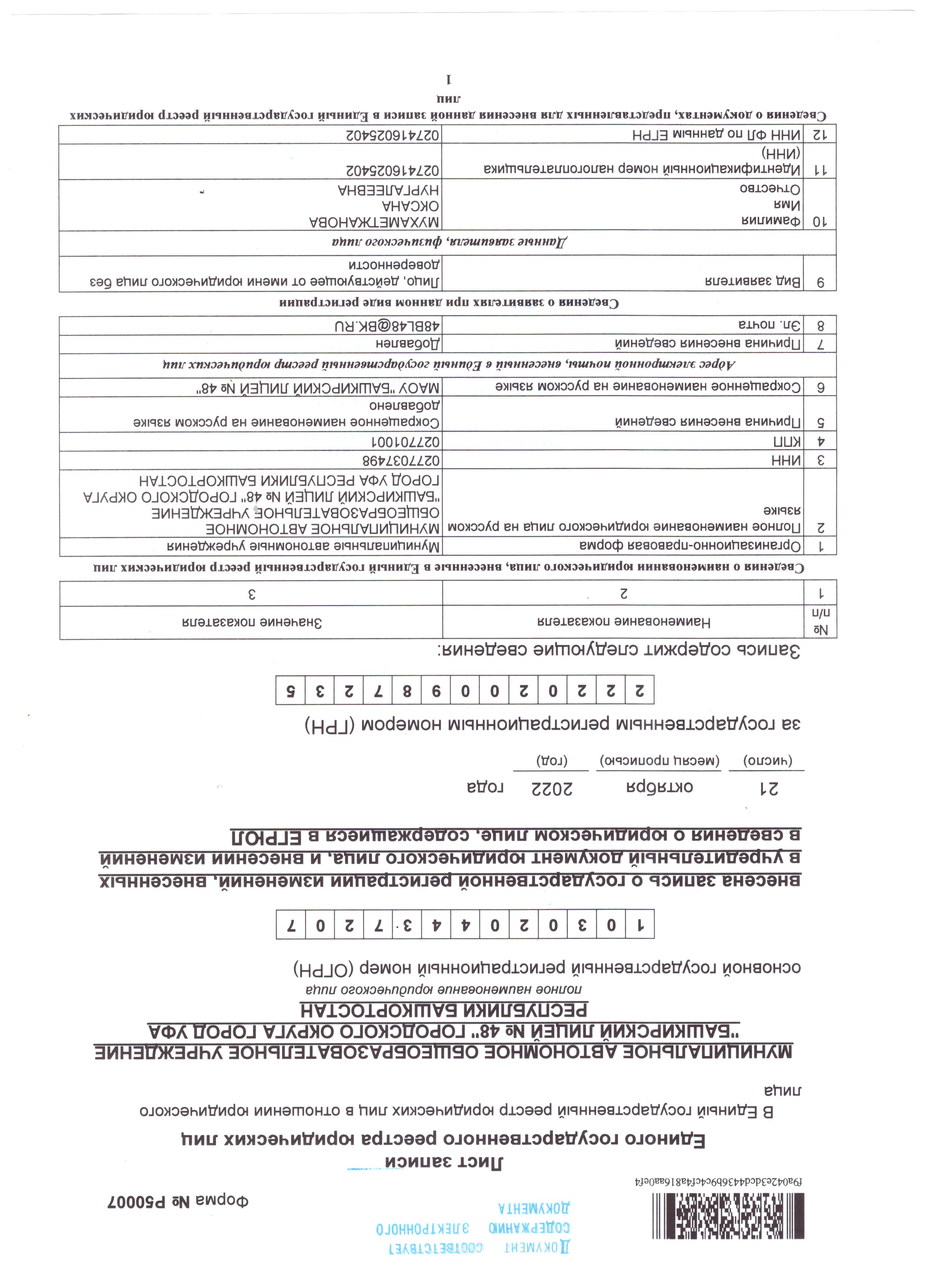 Сокращенное наименование: МБОУ "Башкирский лицей №48"