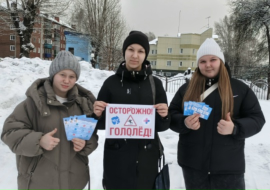 #Волонтёры_медики 🩺 Центра детского творчества приняли участие в традиционной профилактической акции "Осторожно, гололёд!" 🧊