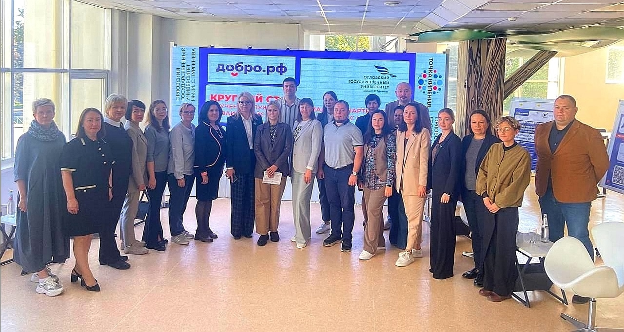 За 2024 - 2025 год на базе ФГБОУ ВО «Орловский государственный университет имени И.С.Тургенева» было принято в работу 15 социальных проектов.Среди участников круглого стола были преподаватели с лучшими практиками реализации федеральной программы «Обучение служением» в Орловском государственном университете имени И.С.Тургенева - доцент кафедры менеджмента и государственного управления, к.э.н., Збинякова Елена , доцент кафедры теории и истории социальной педагогики и социальной работы, к.п.н., Касьянова Наталья, доцент кафедры логики, философии и методологии науки, к.ф.л Гревцева Анна и студенты исполнители социальных заказов.