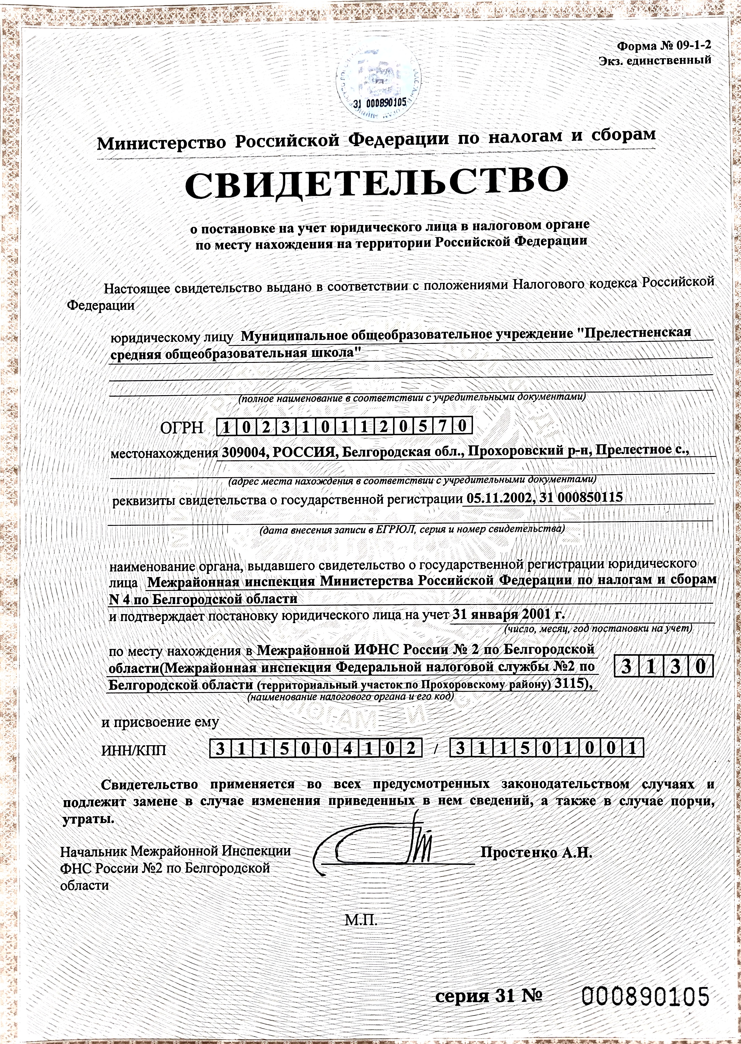 С уважением, директор МБОУ «Прелестненская СОШ».