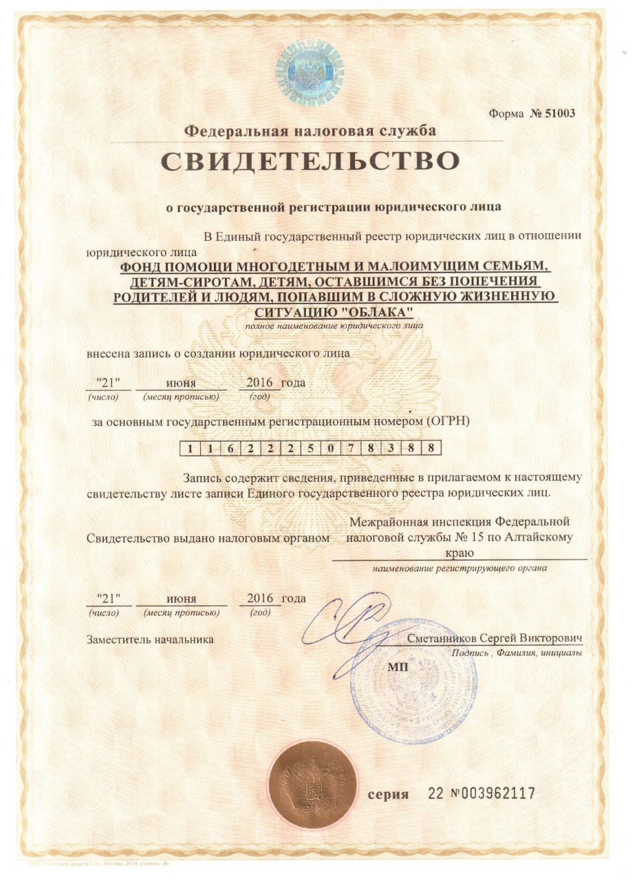 Фонд помощи многодетным и малоимущим семьям, детям-сиротам, детям, оставшимся без попечения родителей и людям, попавшим в сложную жизненную ситуацию «Облака»