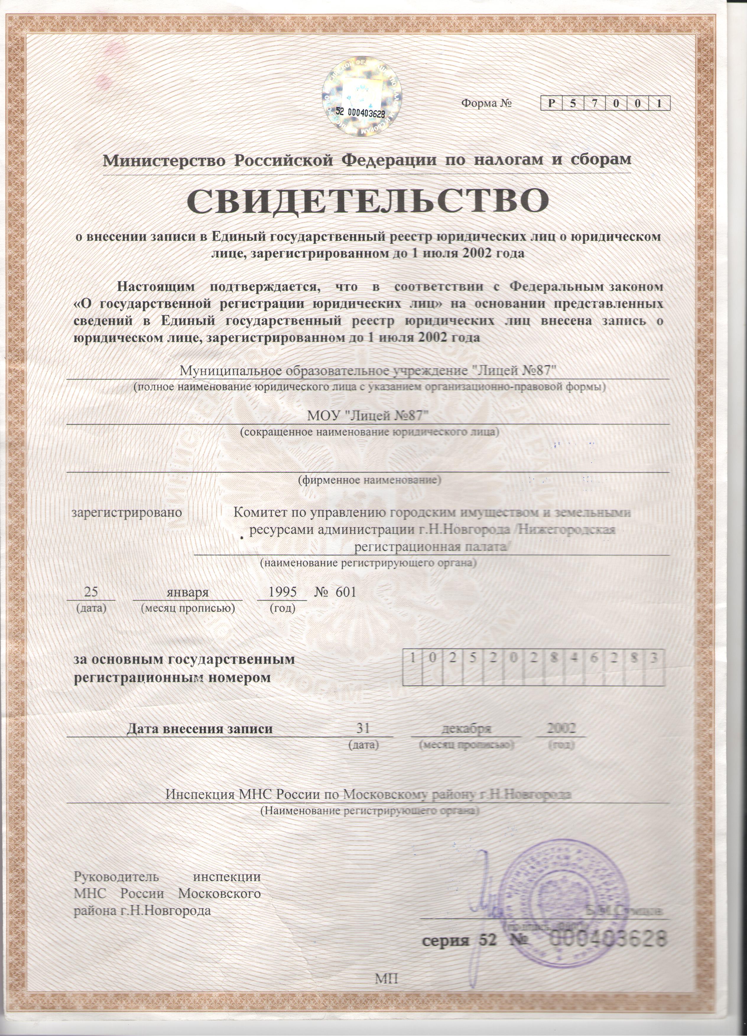 Муниципальное бюджетное общеобразовательное учреждение "Лицей № 87 имени Л.И. Новиковой" было создано в 1989 году. Лицей № 87имени Л.И. Новиковой - инновационная образовательная организация, имеющая статус базовой школы РАН с 2019 года. В Лицее обучается более 1000 учащихся. На базе Лицея работает волонтерский отряд, который является активным участником проектов: