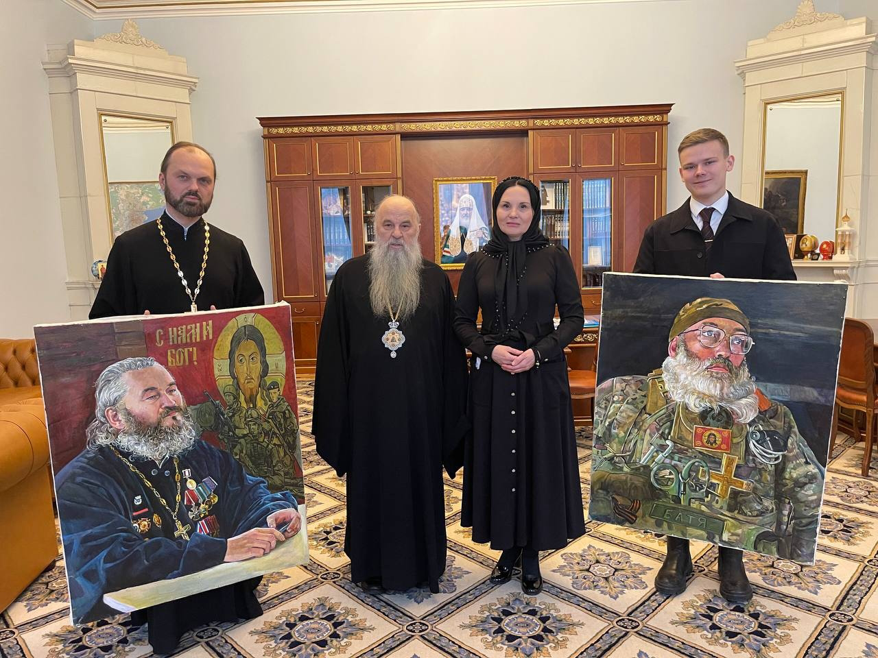 В ходе встречи в дар Санкт-Петербургской епархии были переданы портреты петербургских священнослужителей, исполняющих пастырский долг в зоне СВО, — протоиерея Дмитрия Василенкова и протоиерея Святослава Чурканова. Живописные работы (холст, масло) написаны заслуженным художником Республики Башкортостан Верой Александровной Фроловой специально для проекта и ранее экспонировались на ведущих площадках страны, в том числе в Зале Церковных Соборов Храма Христа Спасителя и Доме Пашкова.
