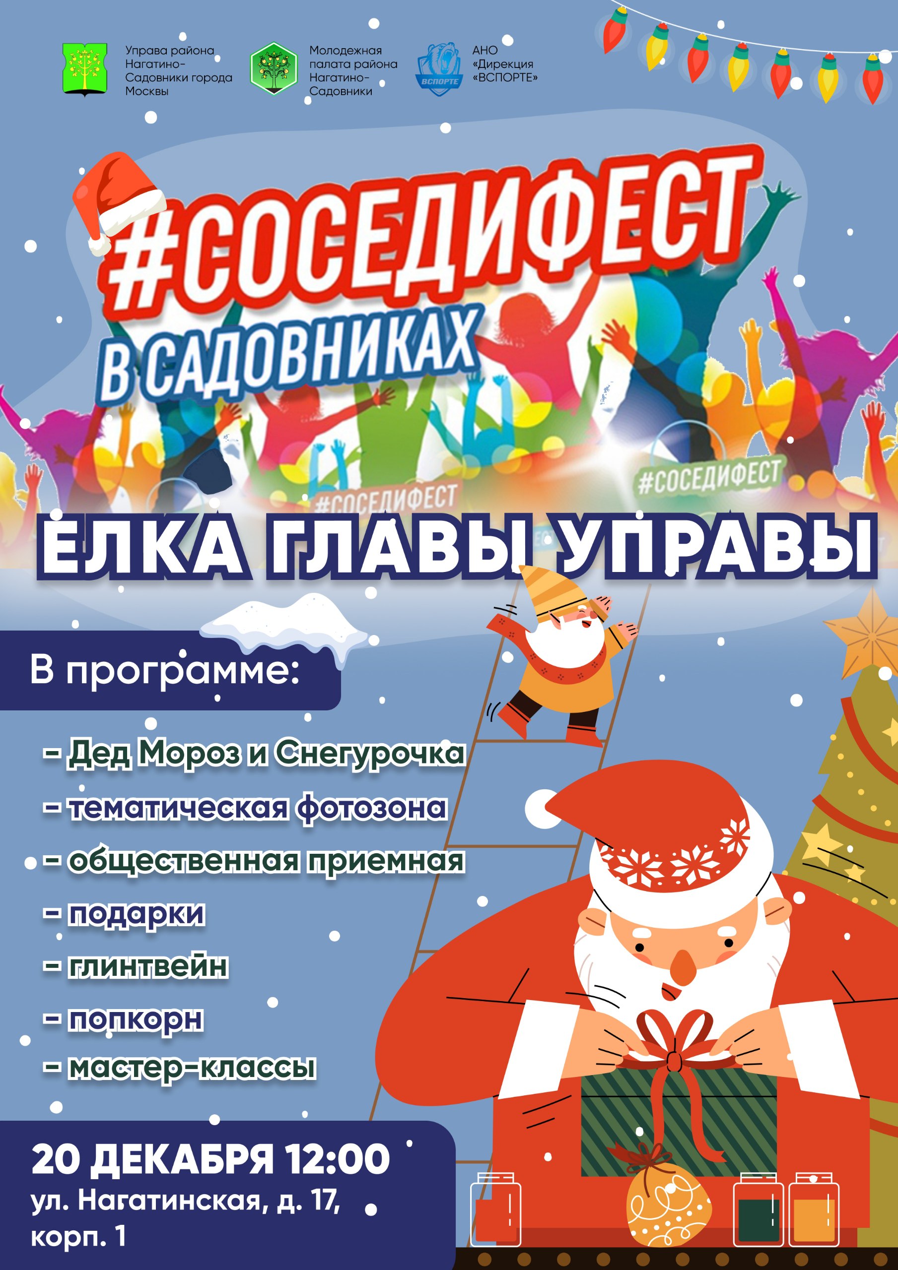 «Лучший способ познакомиться с соседями и зарядиться праздничным настроением — прийти на Ёлку главы управы в стиле #Соседифест», — рассказал Михаил Фролов, председатель Молодёжной палаты района Нагатино-Садовники.