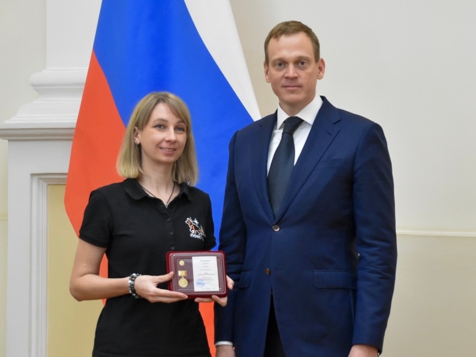Наш кинолог Ирина Анисимова на Форуме гражданского участия #МЫВМЕСТЕ была награждена знаком Губернатора Рязанской области «За благодеяние и милосердие».