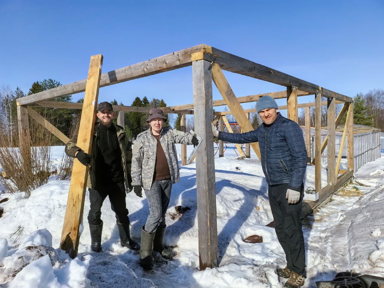 7 февраля в питомнике «Сады Севера» развернулись активные работы — началось строительство хозяйственного блока. Несмотря на зимние условия, процесс пошёл бодро: этот день в деревне Митино трудилась команда помощников питомника.