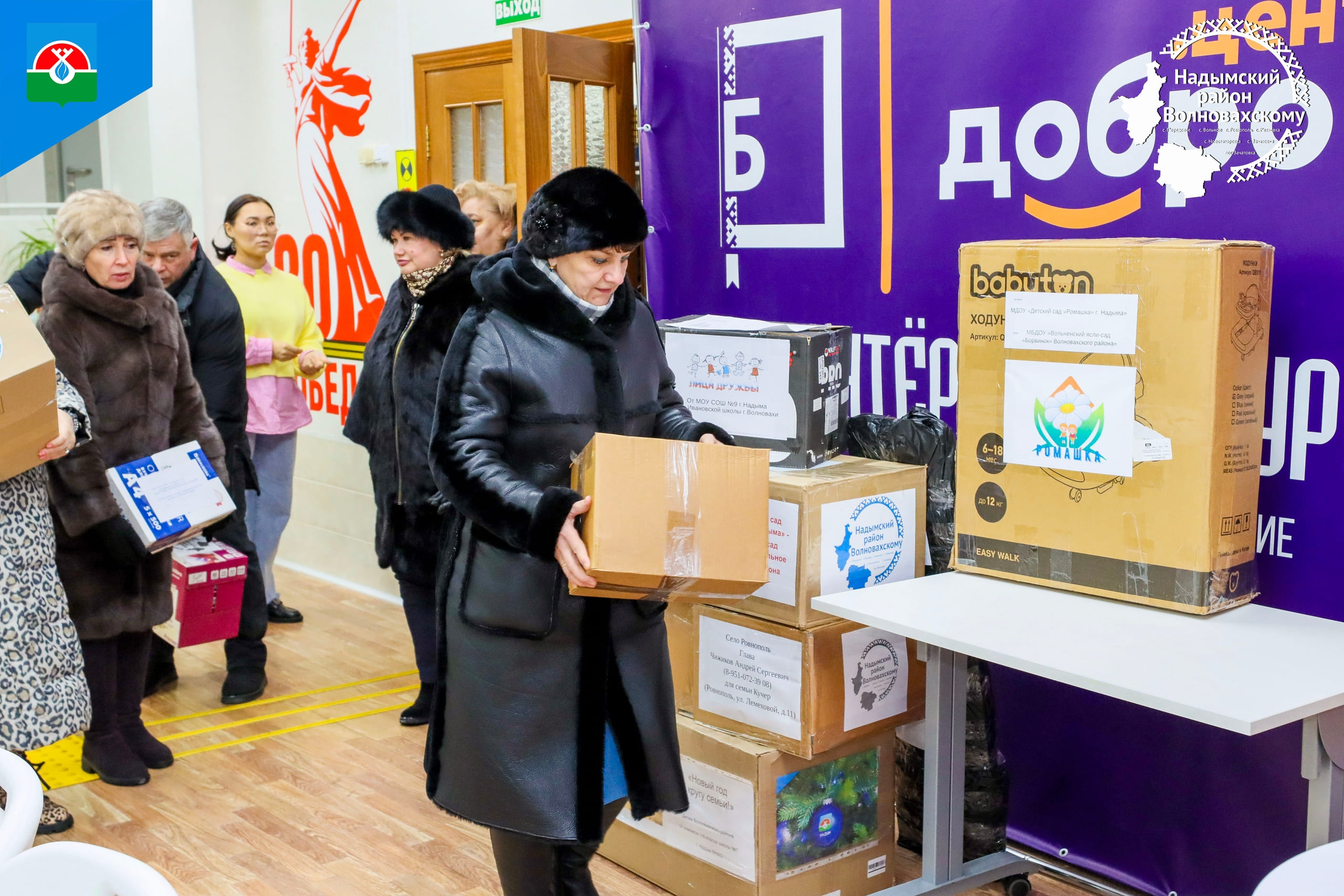 В Добро.Центр «Волонтеры культуры Надыма», расположенный в центральной библиотеке, упакованные коробки приносили коллективы Администрации Надымского района, Газпром добыча Надым, Надымского профессионального колледжа, Центра занятости населения, Управления культуры, Департамента образования, спортивные учреждения, ИП (Лиджи-Горяева) и медицинского центра «Элита», Надымского Землячества, общественной организации «Надымский ветеран», Центра развития добровольчества «Ямал-это люди»(собрали и передали 10 компьютеров в учреждения образования и сельские Администрации).