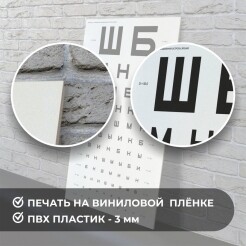Таблица Сивцева (Орловой) - оптометрическая таблица, применяемая для проверки остроты зрения. Таблица выполнена на легком ПВХ пластике толщиной 3 мм. Слева каждой строки указано расстояние D (в метрах), с которого их должен видеть человек с нормальным зрением (50,0 метров для верхнего ряда; 2,5 метра - для нижнего).