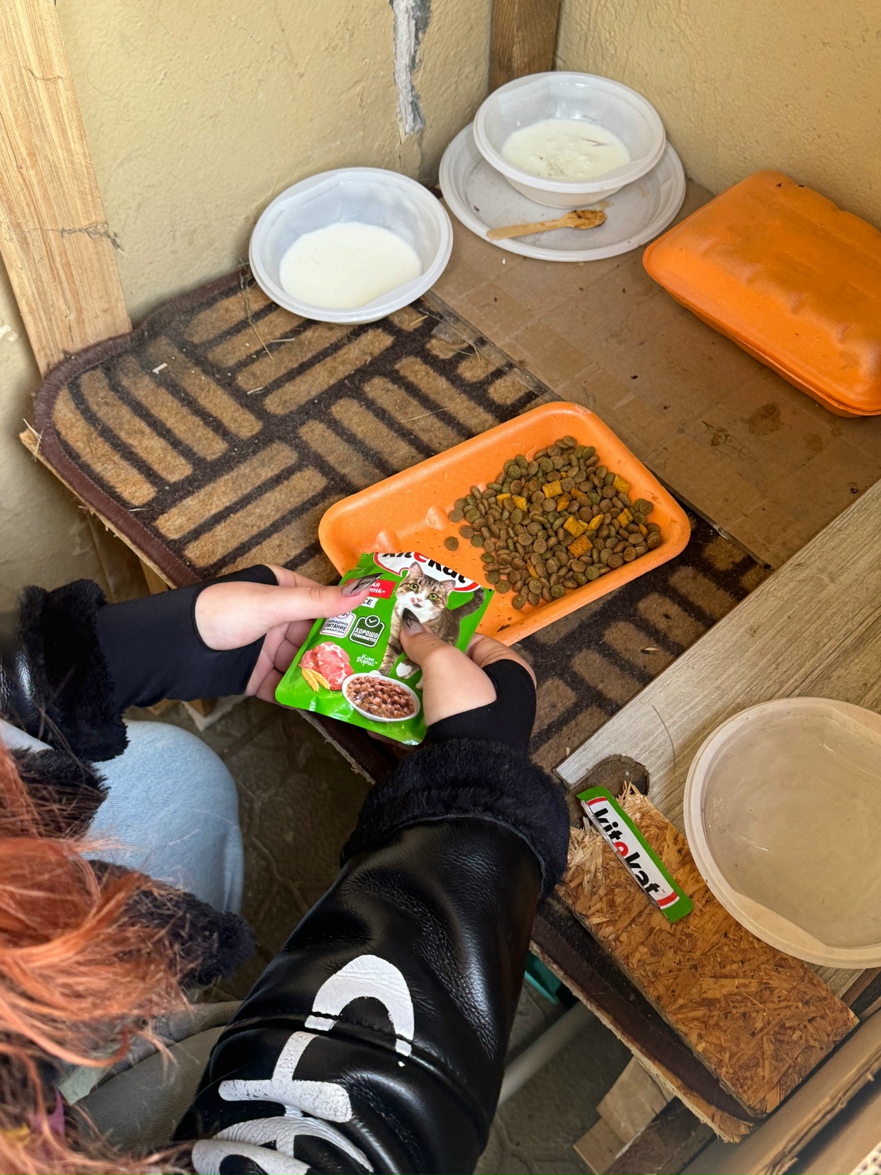 Лаптева София не прошла мимо. Купила корм, насыпала в миску и налила воду. Хочется верить, что маленькая помощь согревает их хотя бы на одну ночь