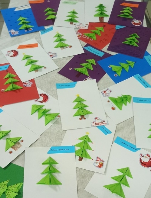 - сделайте такие (или похожие) новогодние открытки, напишите теплые слова поздравлений и поддержки и передайте в Орлёнок одним из способов: