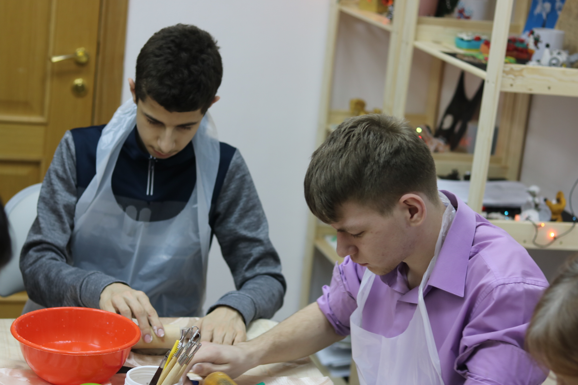Проект инклюзивной мастерской реализуется на территории удаленного микрорайона Вынгапуровский (находится в 100 км. от города Ноябрьск). В микрорайоне у молодежи с инвалидностью нет нет возможности посещать специальные учреждения, где бы они общались, получали трудовые навыки и имели возможность своим трудом приносить пользу обществу. Возможности для трудоустройства также отсутствуют. Все это ведет к тому, что молодые люди с ОВЗ не только не работают, но и имеют крайне узкий круг общения, который ограничен семьей и пространством квартиры. Проект направлен на расширение инклюзивного пространства путем интеграции молодых инвалидов с ментальными нарушениями в общество за счет вовлечения в процесс творческого труда в мастерских. В мастерских участники проекта учатся, а позже и изготавливают сувенирную продукцию под руководством профессиональных наставников и волонтеров. С 2018 года на базе Центра "Факел" ведется работа по социализации детей, подростков и молодежи с ОВЗ через организацию развивающих занятий. Они рисуют, работают в гончарной мастерской, посещают занятия по АФК, работают с психологом. Интерес и родителей, и ребят к занятиям достаточно высок, что подтверждают и результаты. Ребята - участники и победителти всероссийских конкурсов. Поэтому, инклюзивная мастерская- это возможность не только получить определенные навыки, но возможность быть полезными социуму. Инклюзивная мастерская - это открытое пространство, где не просто работают, но и общаются с наставниками, друг с другом и здоровыми сверстниками (волонтерами). Направления работы мастерской: изготовление значков и магнитов на основе рисунков ребят, керамических изделий (тарелок, кружек, сувениров), нанесение графических принтов на изделия, изготовление текстильной продукции (шоперов, продуктовых мешочков, косметичек). Кроме того, В рамках работы инклюзивной мастерской планируется проведение авторских выставок, творческих встреч и событий, которые позволят интегрировать молодежь с ОВЗ в социум и разрушить "барьеры инвалидности" и психологическую изоляцию участников проекта. В Центре уже сейчас есть часть оборудования, которое мы используем для изготовления сувениров: гончарный круг, печь для обжига керамических изделий, термопресс и принтер для термопечати. Свою первую сувенирную продукцию ребята дарят участникам мероприятий, гостям и родителям. Но уже в ноябре 2020 года будет разработаны первые авторские эскизы и пробные образцы сувенирной продукции для участников IV c]ъезда Молодежных Советов ЯНАО. Здесь же ребята презентуют каталок своей продукции.