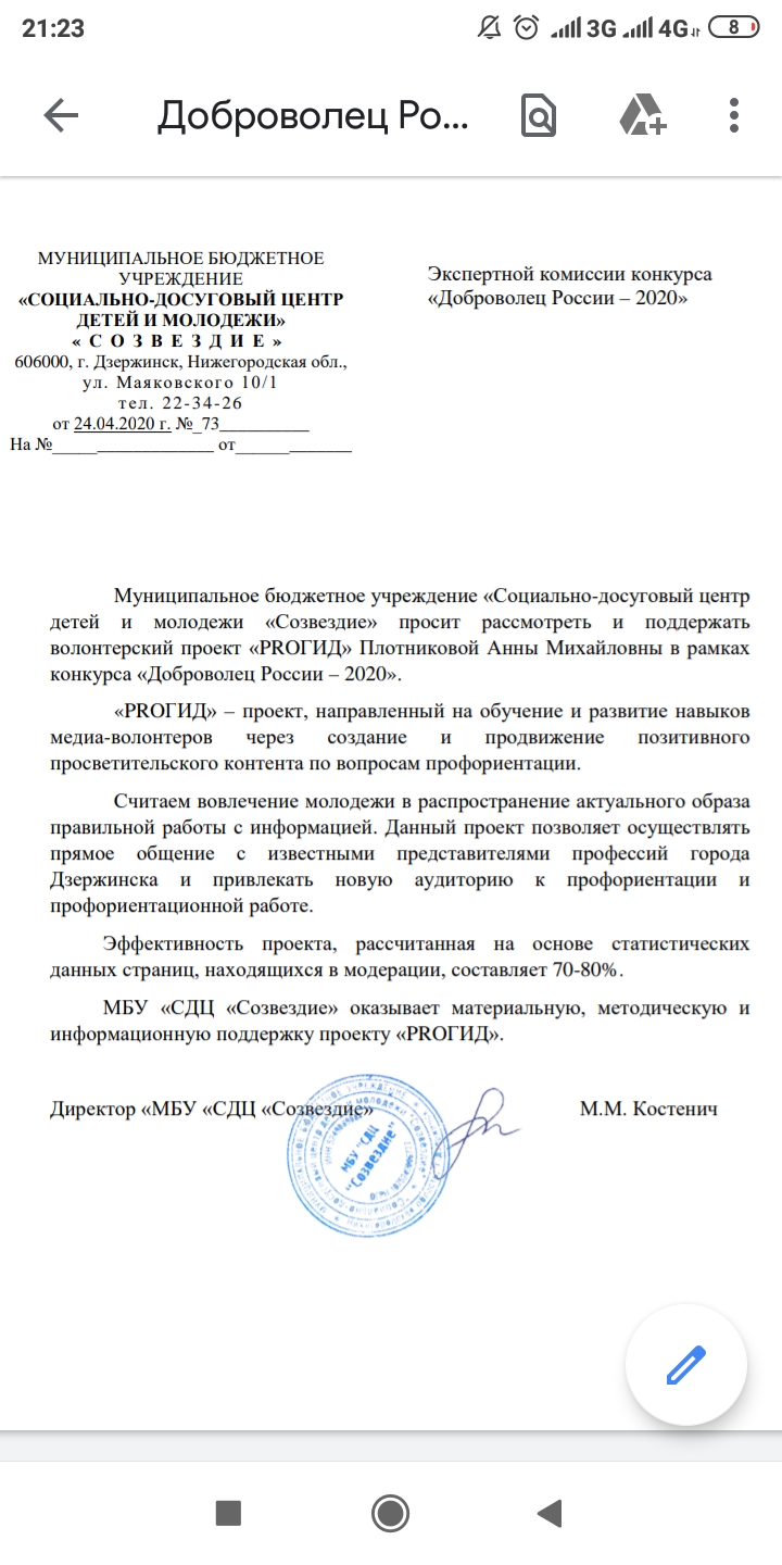 Проект "PROГИД - дневник о профессиях" реализуется с 2019 года в онлайн формате – создание волонтерами видео-интервью . В 2021 году в рамках проекта используется и оффлайн формат с интерактивных методов в профориентации.