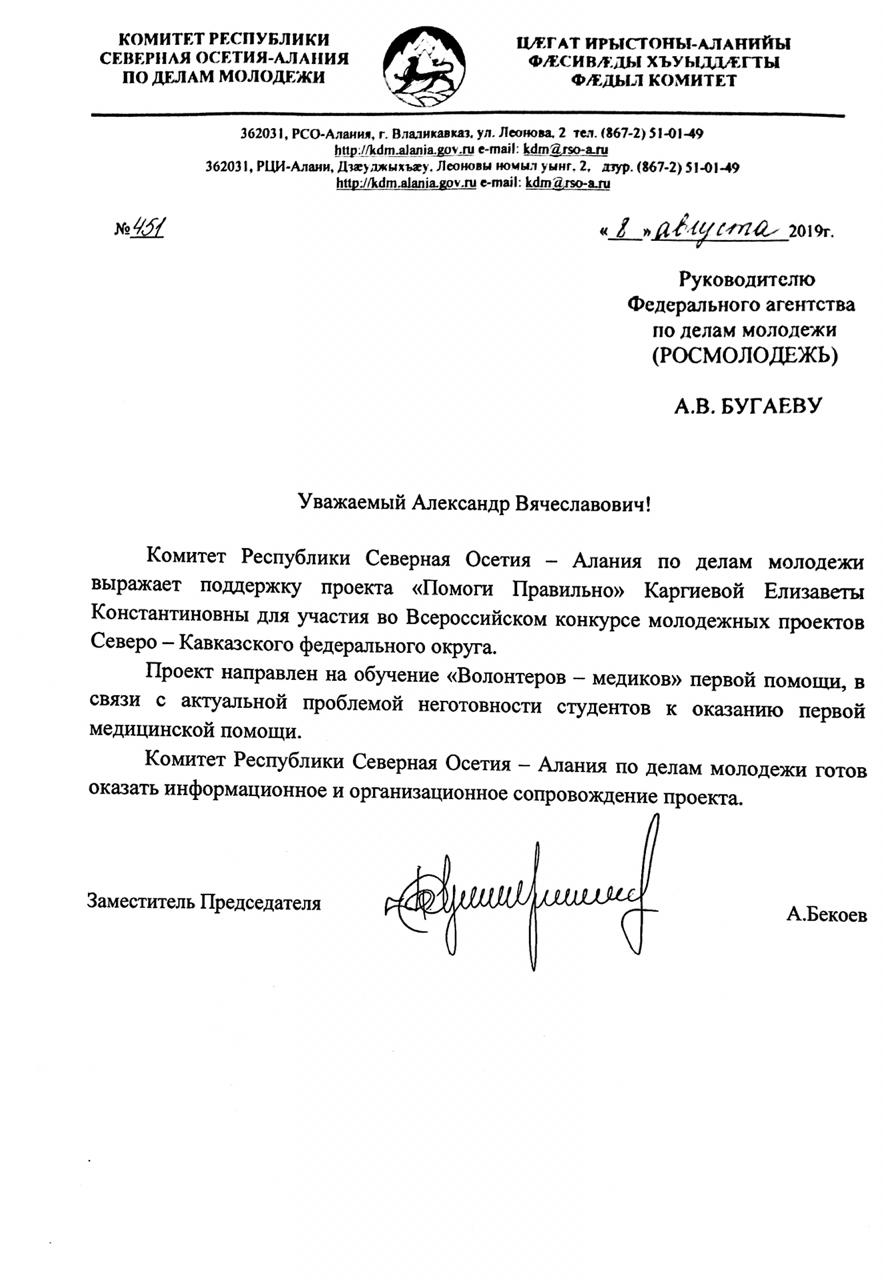 Проект "Помоги Правильно" направлен на обучение молодежи в возрасте от 14 до 35 лет, деятельность которых преимущественно связана с общественной деятельностью в различных точках населённых пунктов Республики Северная Осетия-Алания по оказанию первой помощи и профессиональной ориентации в медицинском волонтерстве. Учащиеся, проявившие свои лидерские качества в дальнейшем станут наставниками медицинского добровольчества в своих учебных заведениях. В начале проекта будет проведено обучение 250 волонтеров, среди которых будут отобраны 40 человек по итогам аттестации, которые будут выезжать в отдаленные населенные пункты и проводить обучение молодежи. Молодежь, прошедшая обучение по первой доврачебной помощи и получившая сертификаты, будет иметь преимущество при вступлении в общественные организации.