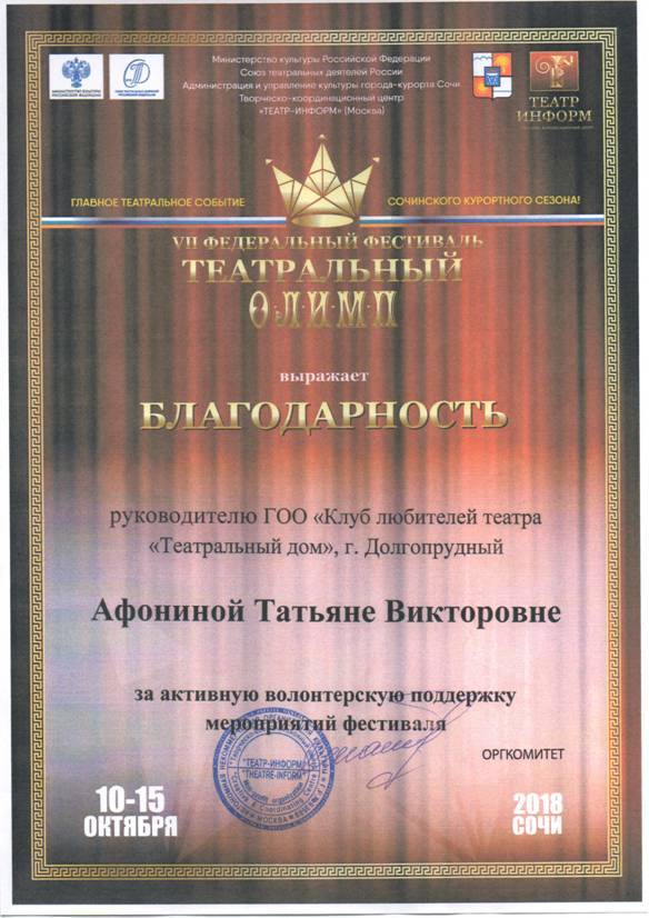 За 2019 год арт-волонтерский отряд городской общественной организации "Клуб Любителей Театра "Театральный дом" провел 57 мероприятий для членов общественных организаций, в результате которых атмосфера в Центре культурно-общественных связей стала более дружественной и объединила в общении между собой общественные организации разной направленности.