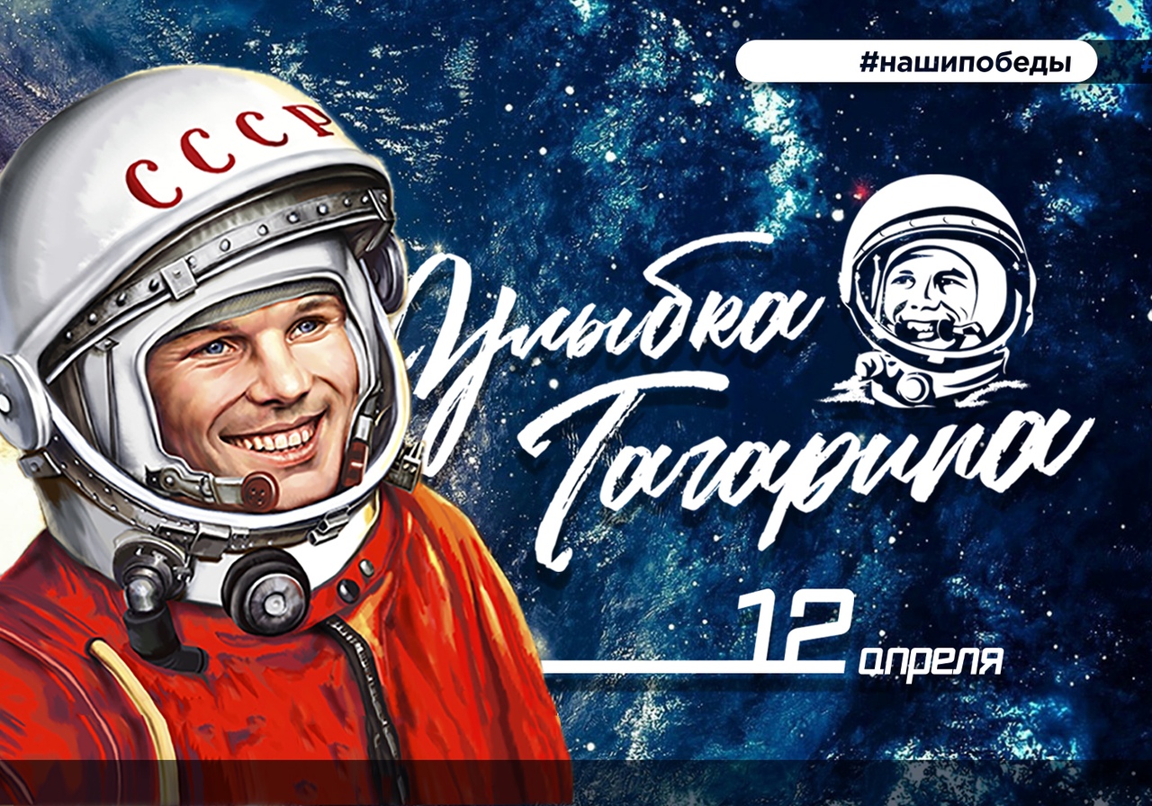 Интернет-акция, где участники, улыбаясь, фотографируются с портретами космонавтов.