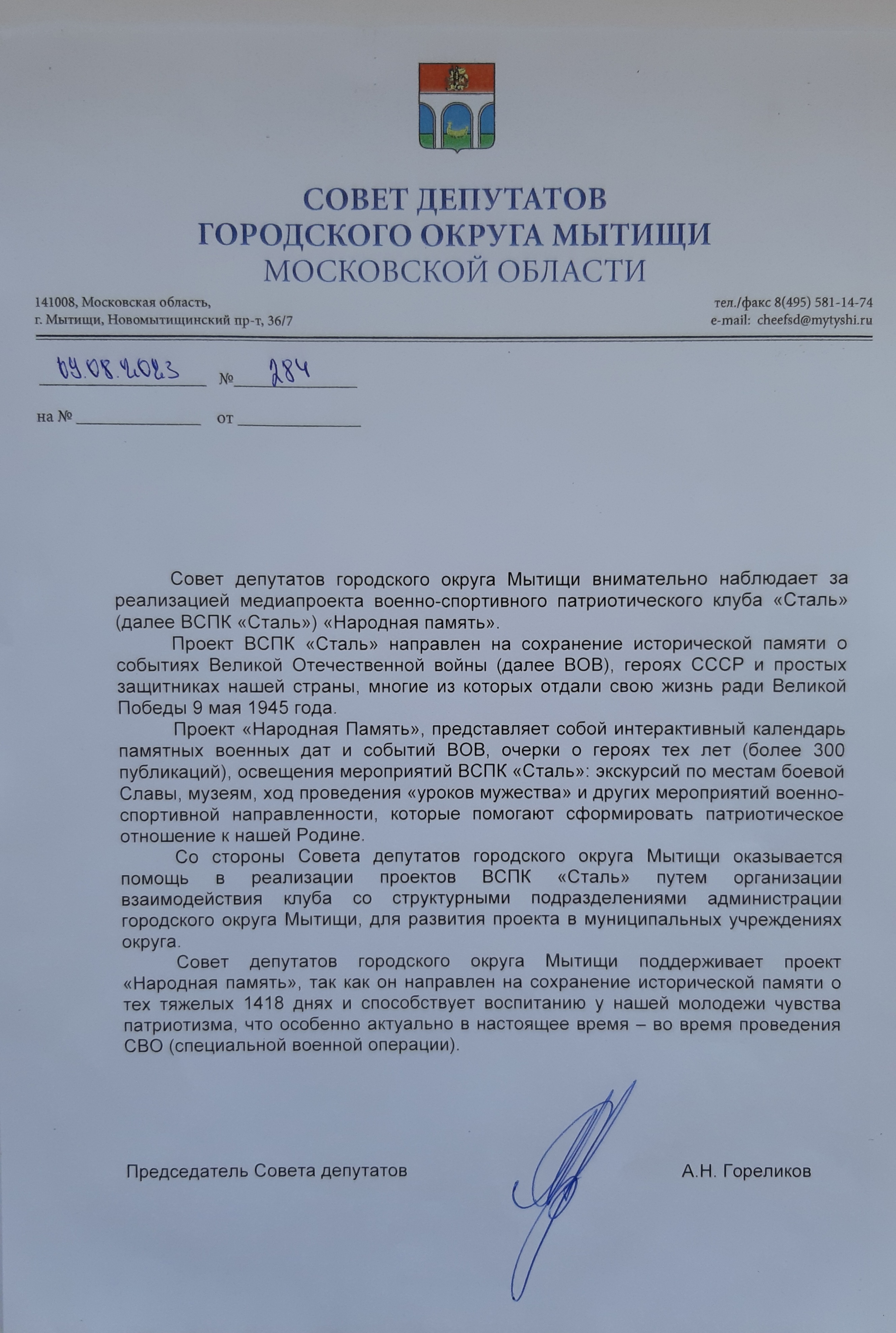 - благодаря взаимодействию с депутатом Государственной Думы Фомичевым В.В. была освещена ознакомительная поездка ВСПК Сталь в ГБУК Московской области Военно-технический музей в 2022 году.