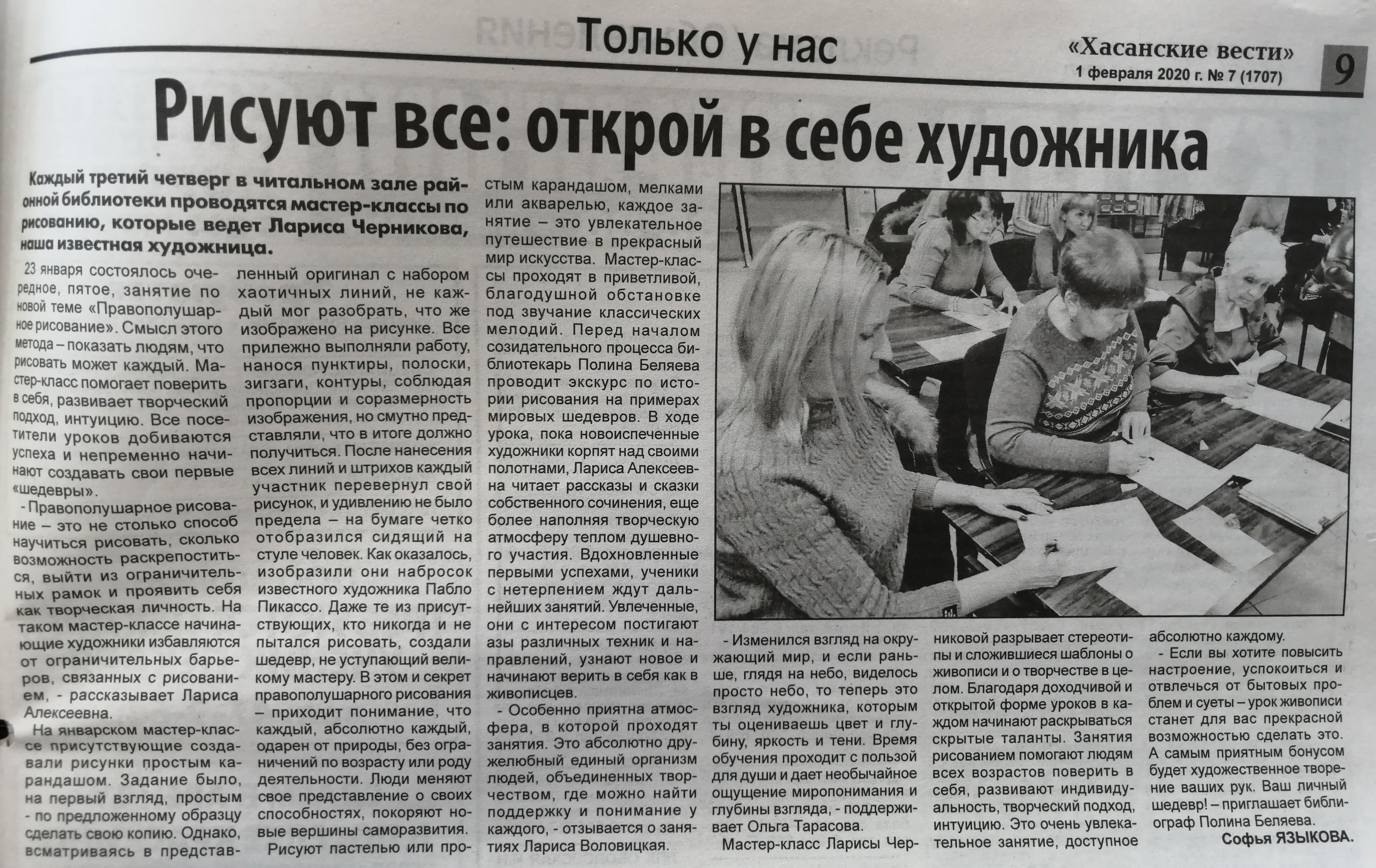 В клубе имеются более 30-ти постоянных участников, которые изучили основы рисования простым карандашом, красками, пастельными мелками. Клуб пользуется спросом, появляются новые участники. Несмотря на пандемию, в результате которой участники не могут посещать библиотеку, они общаются друг с другом по видеосвязи, продолжают рисовать.