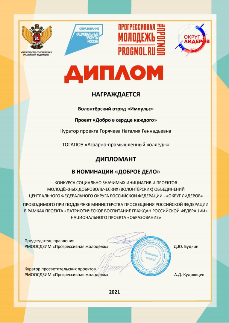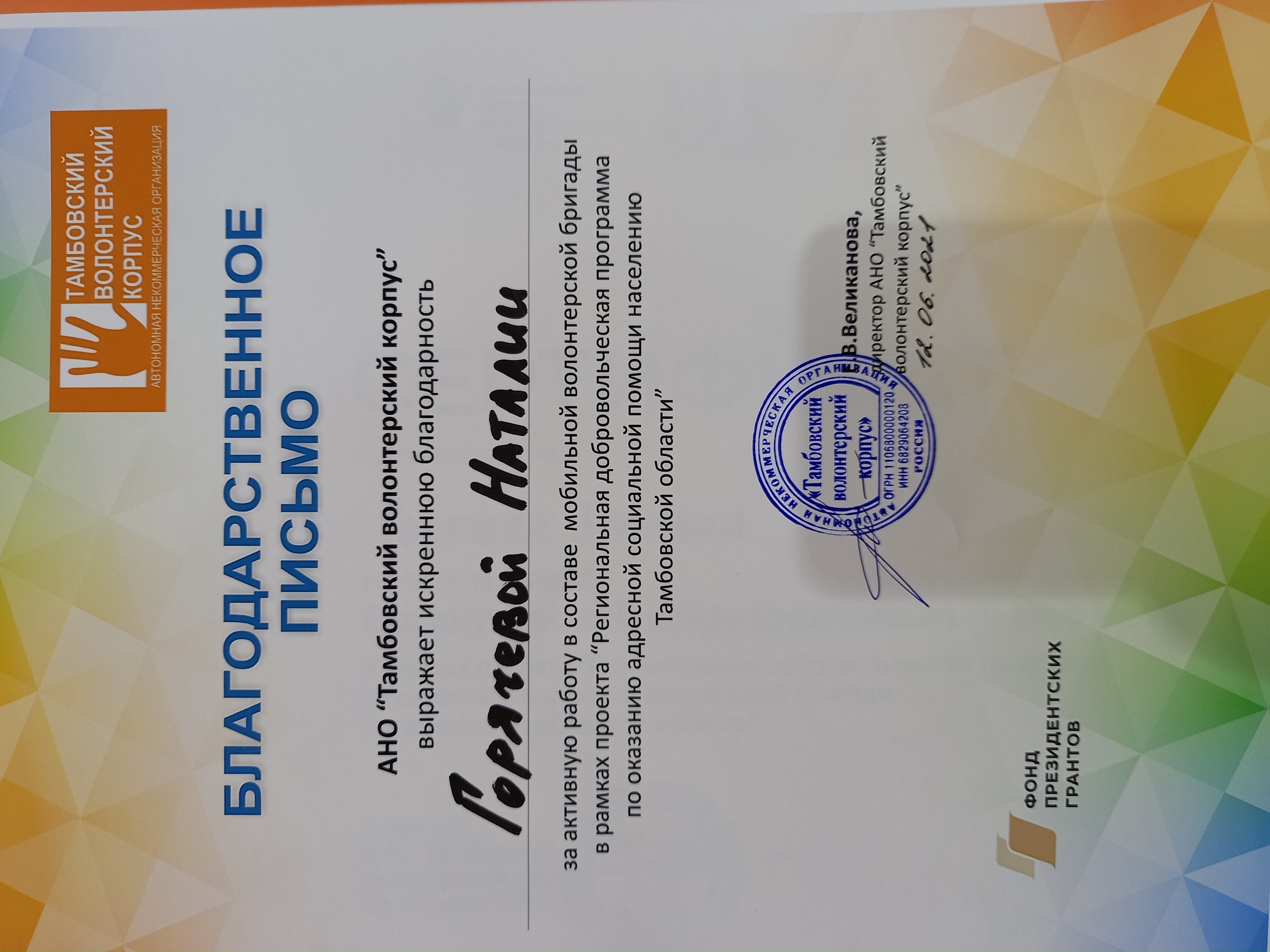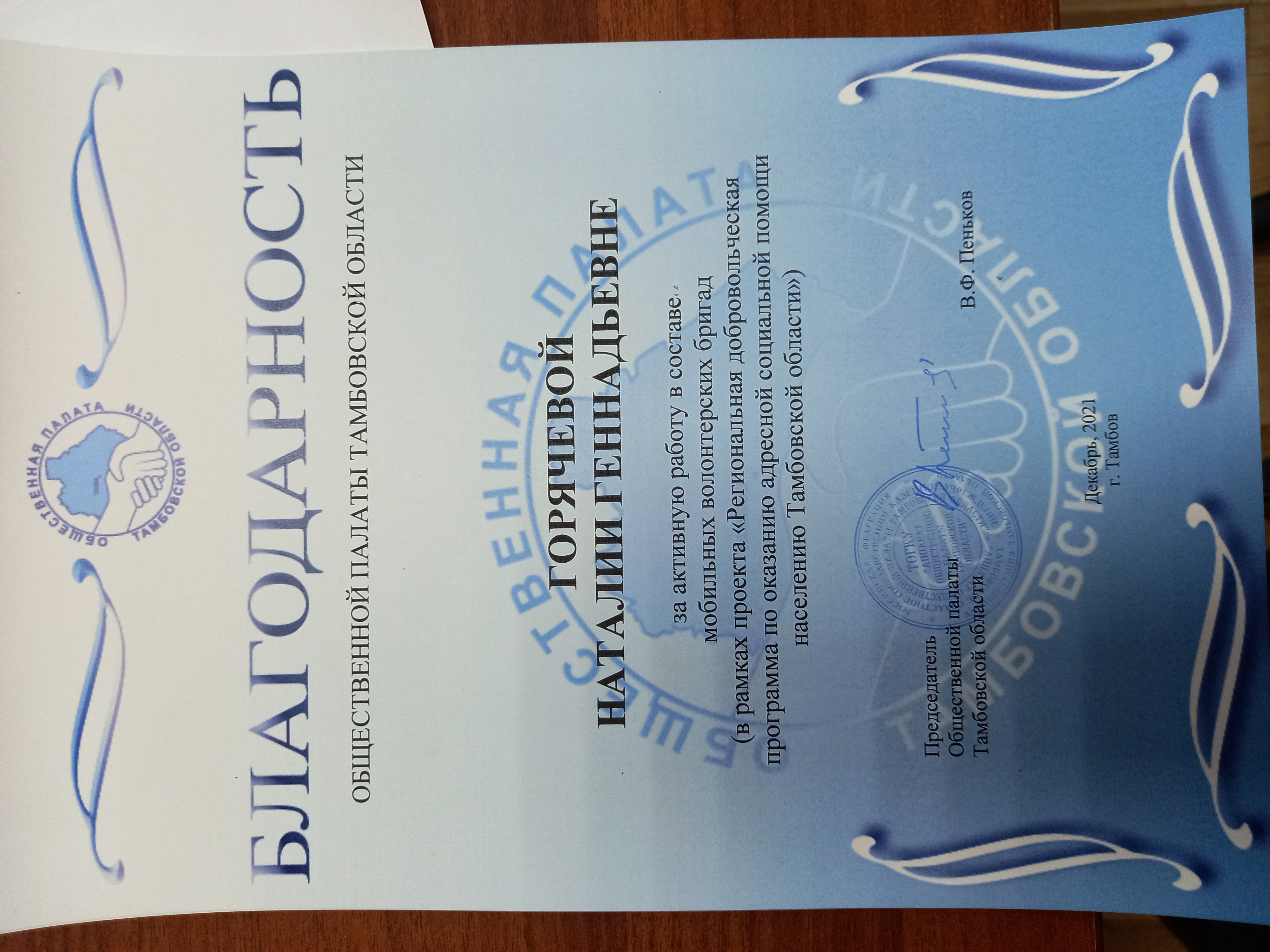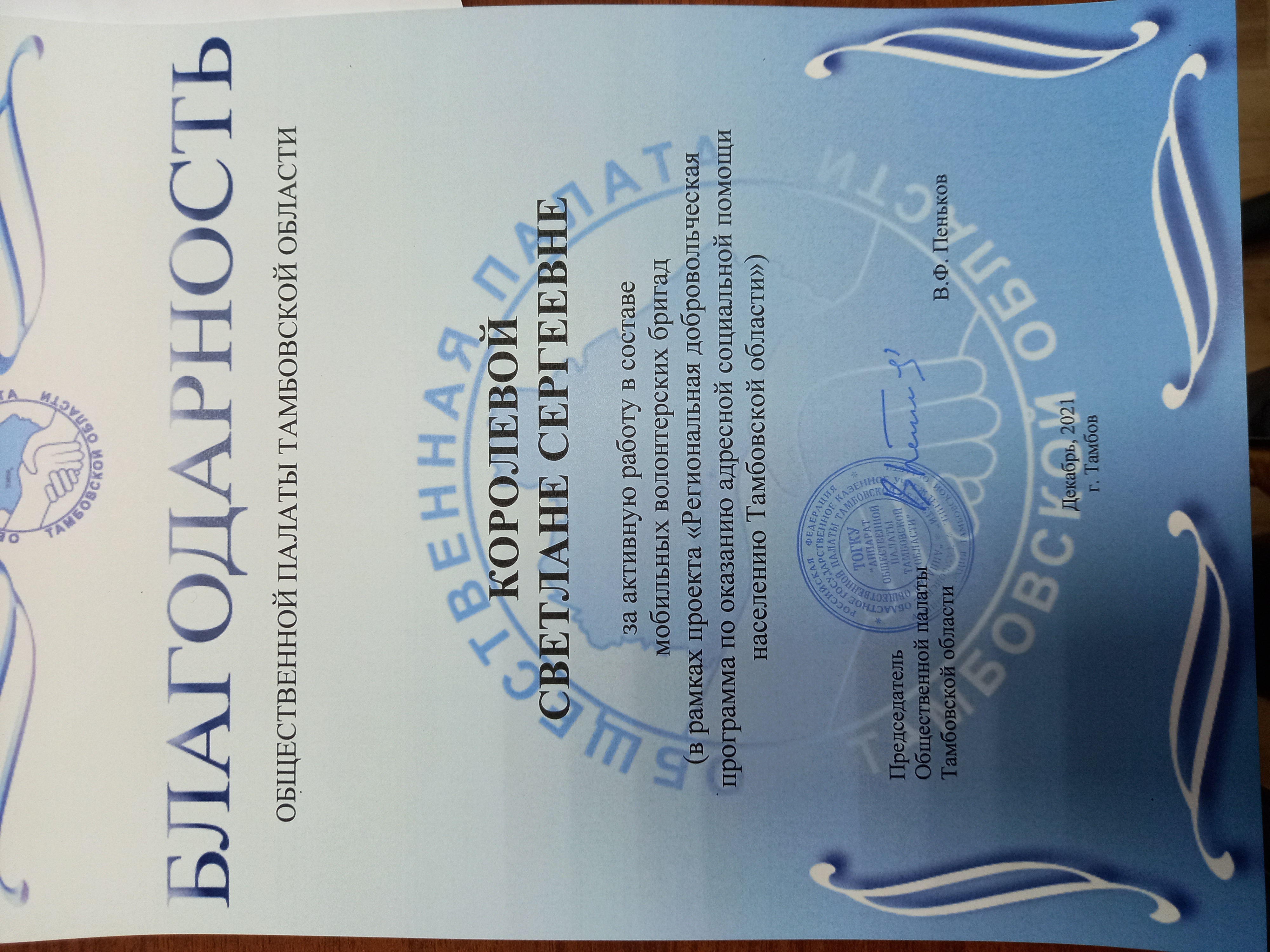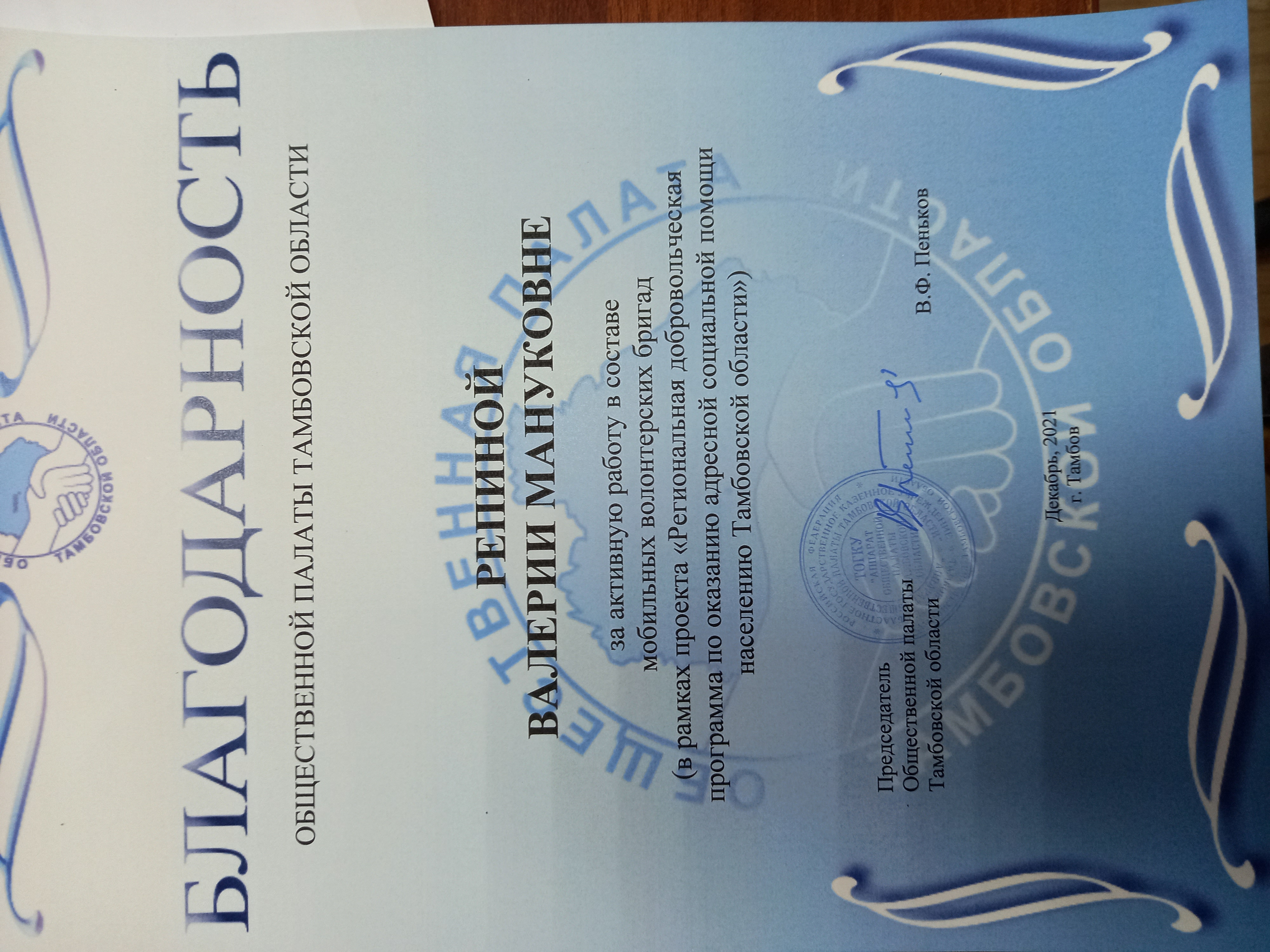 Была проведена огромная работа в рамках проекта "Региональная добровольческая программа по оказанию помощи населению Тамбовской области» с февраля 2021 года по март 2022 года. В результате работы мобильной бригады волонтеров было отработано более 1000 заявок.