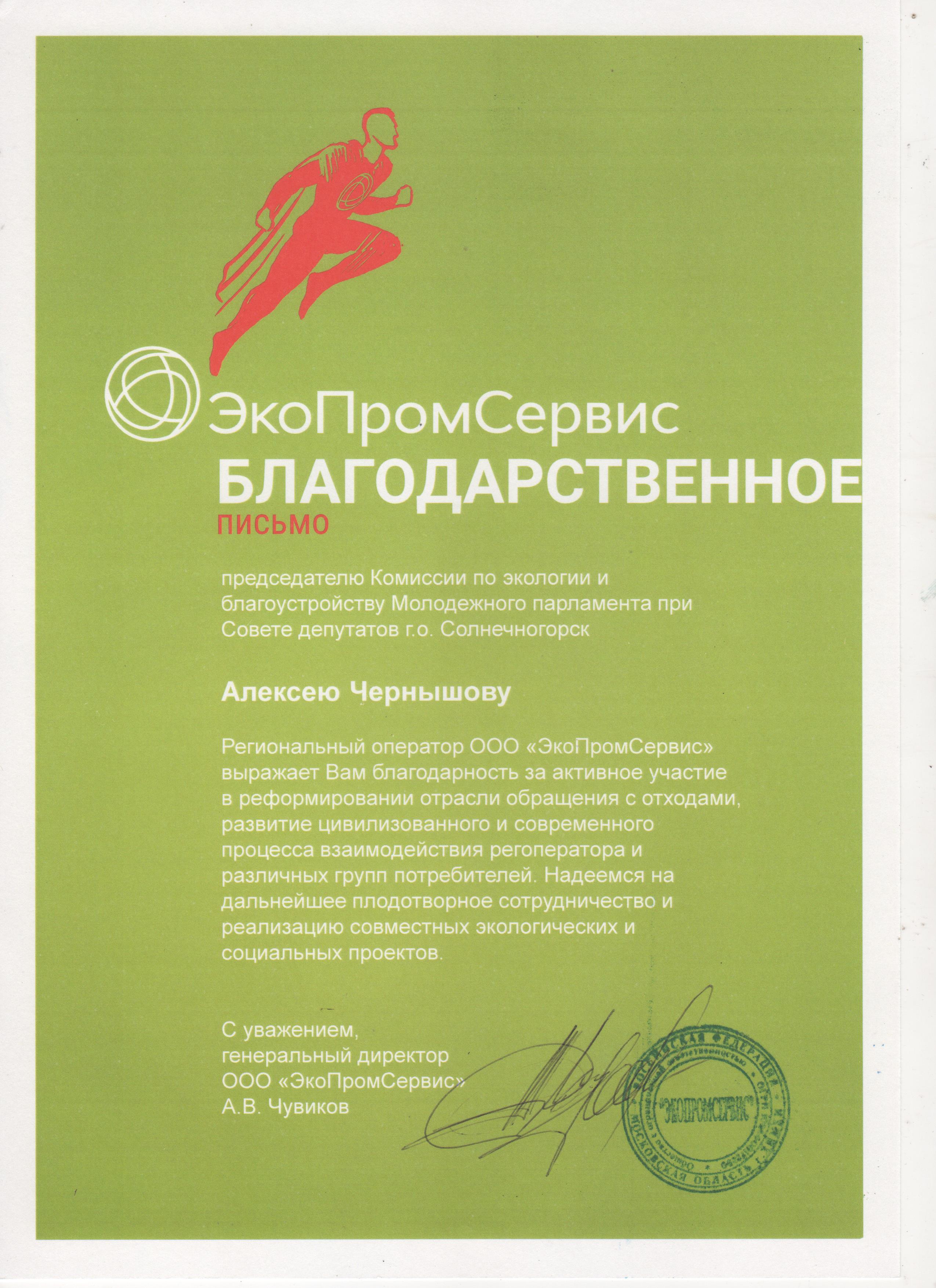 - Взаимодействие с органами местного самоуправления г.о. Солнечногорск, региональным оператором по обращению с ТКО «ЭкоПромСервис», Молодёжным парламентом при Совете депутатов г.о. Солнечногорск, молодёжными центрами, общеобразовательными учреждениями, домами культуры, благотворительными проектами г.о. Солнечногорск;