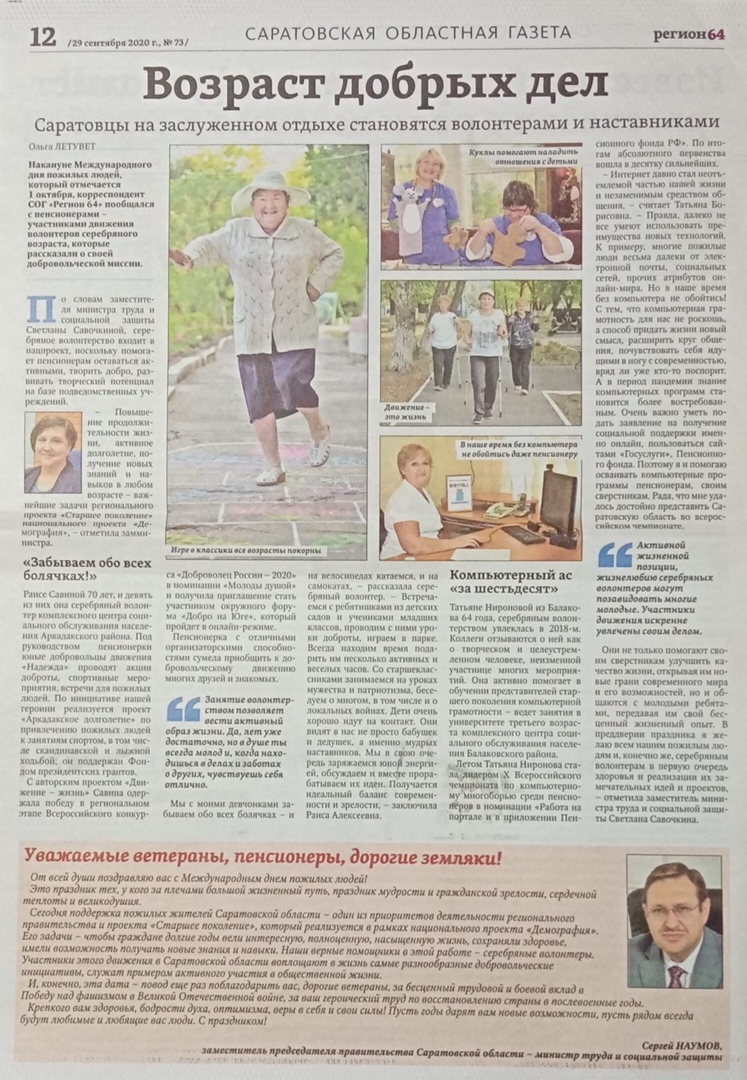 В целях повышения информированности пожилых людей в вопросах здорового образа жизни, сохранения и укрепления своего здоровья планируется изготовление и распространение буклетов и брошюр по данной тематике, а также размещение информации в сети (https://social.saratov.gov.ru/,https://ok.ru/group/58156305088761, https://vk.com/natalya.kotova84 и др. ).