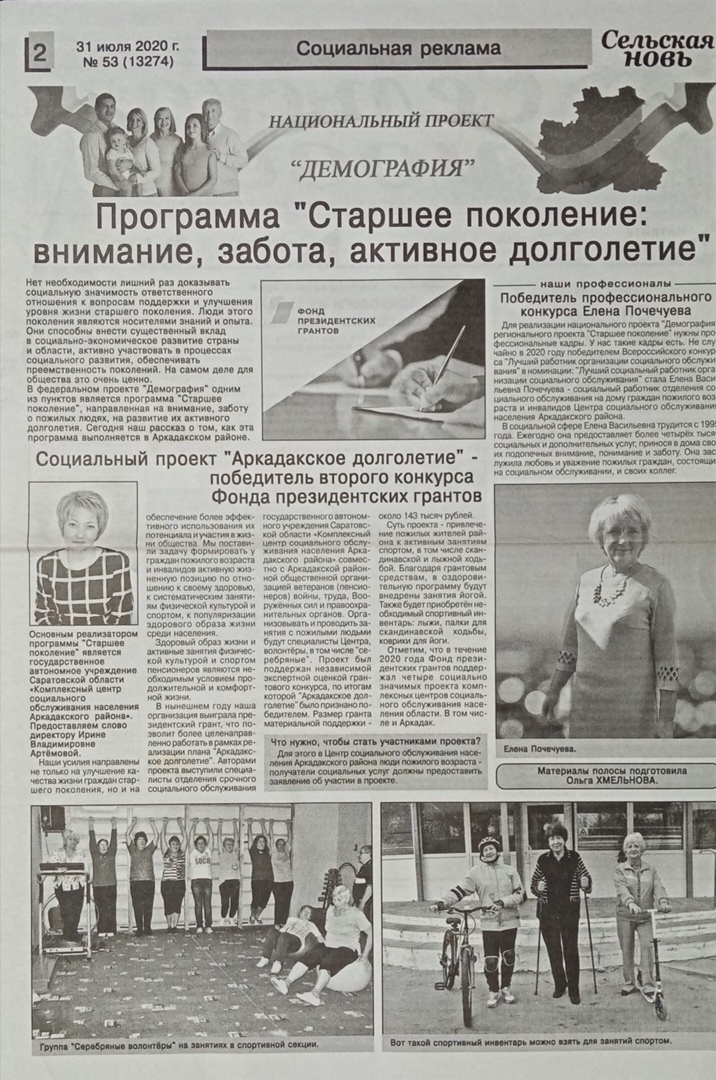 Данный проект направлен на формирование у граждан пожилого возраста и инвалидов активной жизненной позиции по отношению к своему здоровью, к систематическим занятиям физической культурой и спортом, к популяризации здорового образа жизни среди населения. Здоровый образ жизни и активные занятия физической культурой и спортом пенсионеров являются необходимым условием продолжительной и комфортной жизни. В рамках проекта на базе ГАУ СО КЦСОН Аркадакского района будет создана группа здоровья из числа участников волонтерского движения «Серебряные волонтеры», действующего на базе учреждения. Проект предусматривает проведение различных форм занятий: от тематических бесед до занятий по скандинавской и лыжной ходьбе.