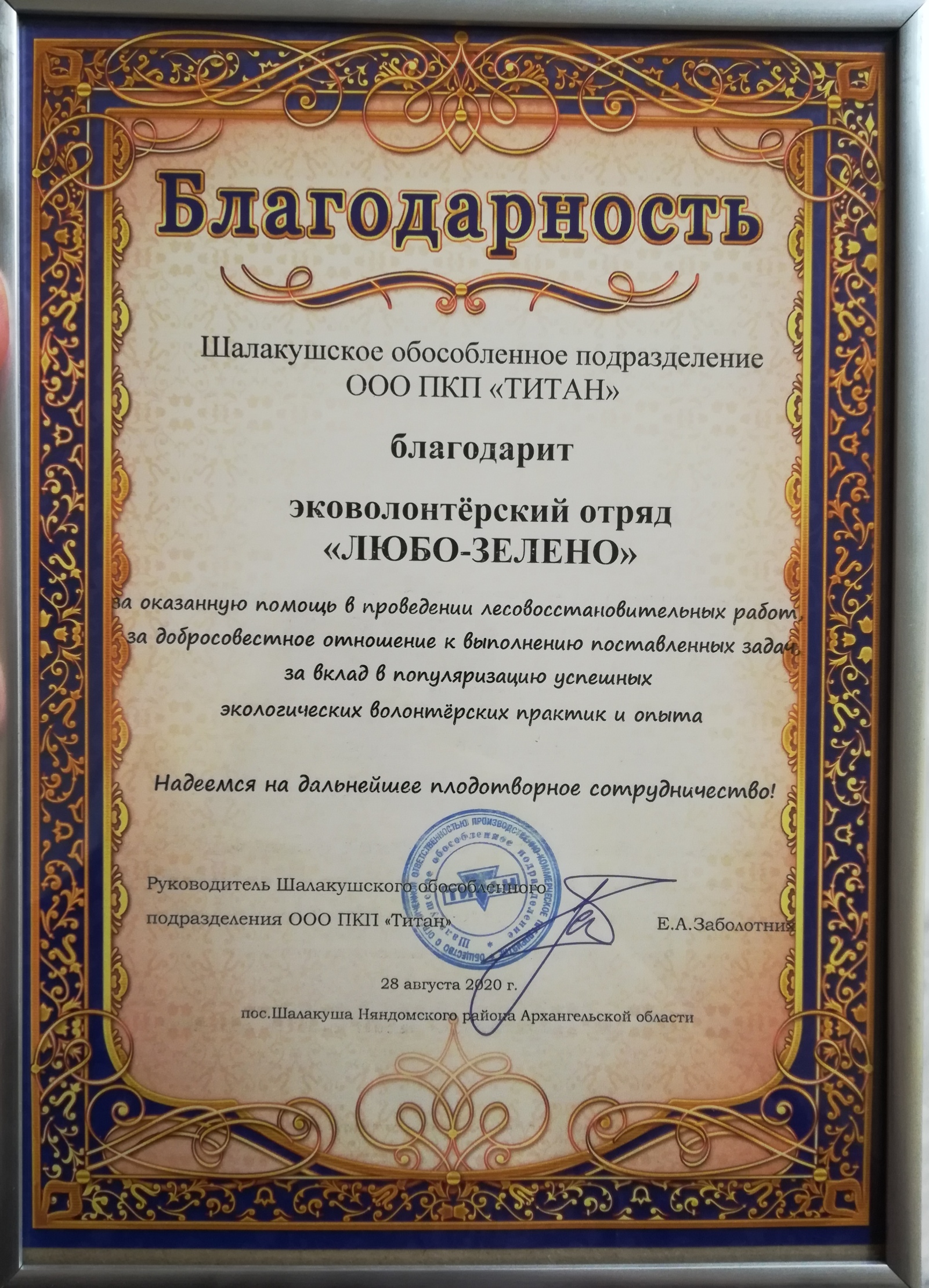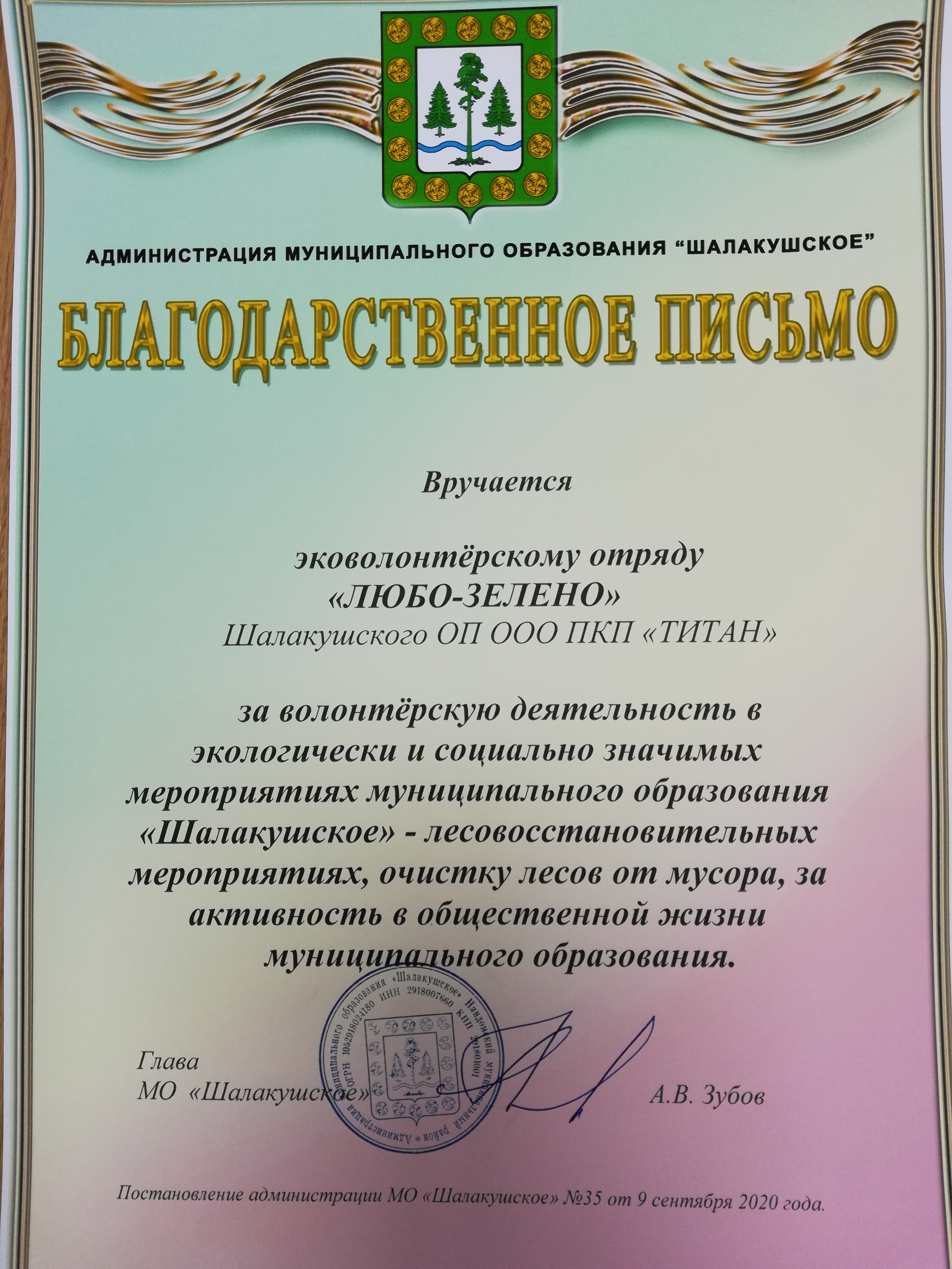 Эковолонтерский отряд «ЛЮБО-ЗЕЛЕНО», инициатором создания которого является Шалакушское ОП ООО ПКП «Титан», создан впервые 13.08.2020 г.