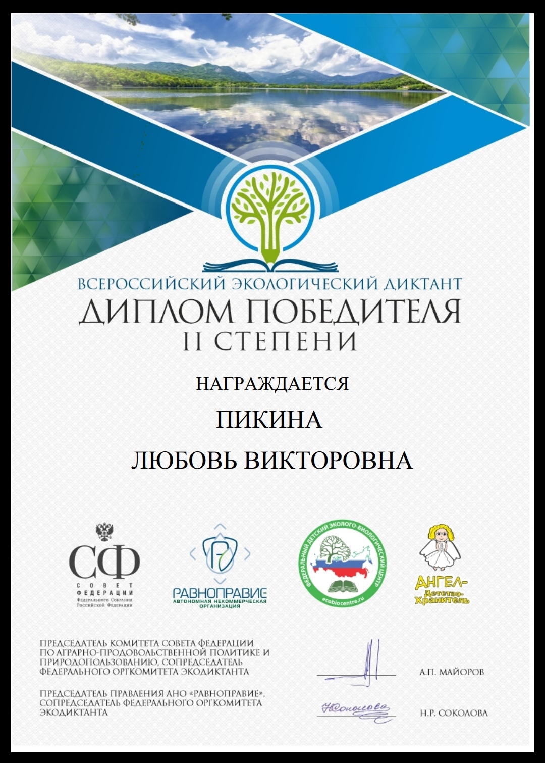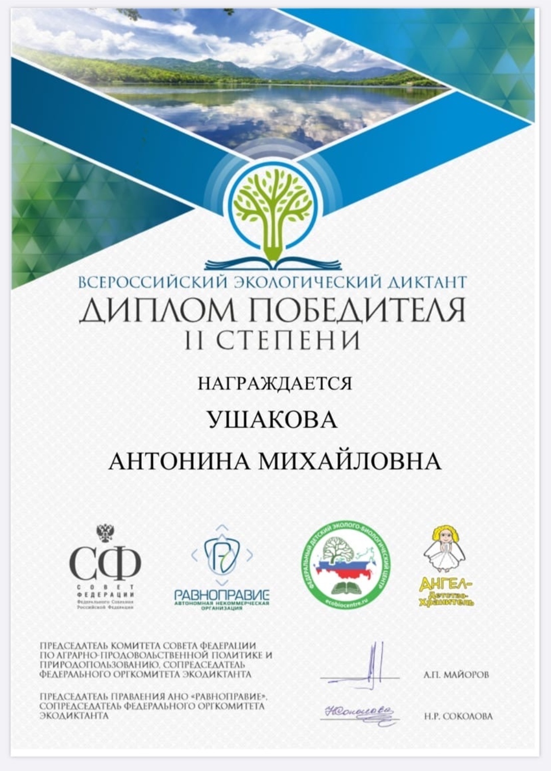 1. Ноябрь 2020 г. эковолонтёрский отряд "ЛЮБО-ЗЕЛЕНО" Шалакушского ОП вошёл в топ-30 III Всероссийского конкурса «Лучший эковолонтёрский отряд» 2020 года, награждён дипломом победителя в номинации «ЭКО молодость». 2. Июнь 2021 года 2 члена экоотряда «ЛЮБО-ЗЕЛЕНО» являются победителями районного конкурса «ДОБРО начинается с меня» (администрация МО «Няндомский муниципальный район» Архангельская область.