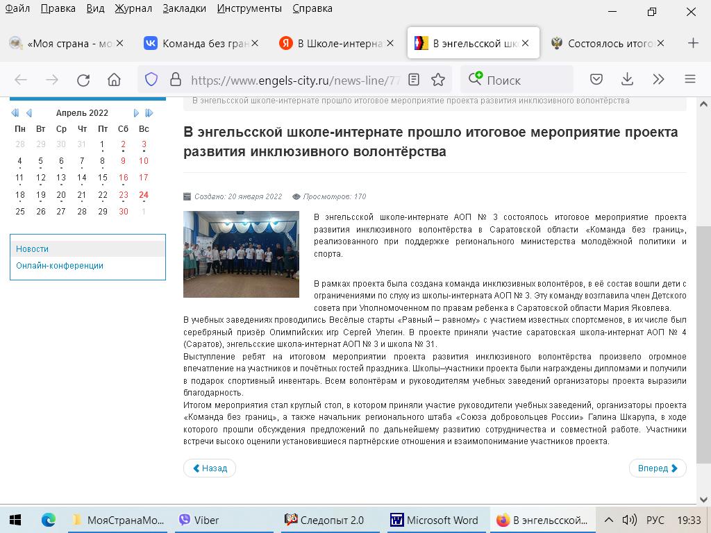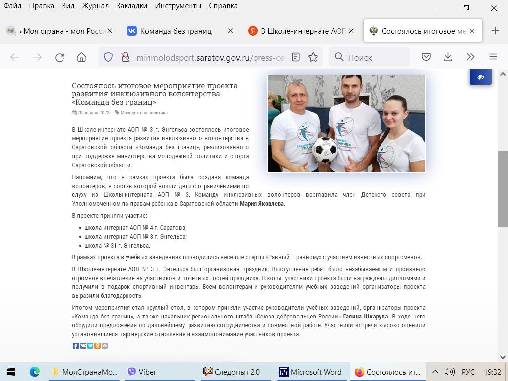 - формирование в школах-интернатах с АОП команд инклюзивных волонтёров;Вовлечено добровольцев –80 человек.