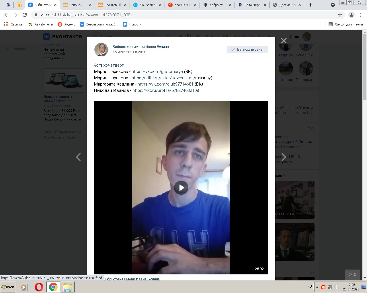 Результатом проекта будет создание условий для ознакомления потенциальных участников проекта с более чем 500 авторами регионального и Всероссийского значения. В рамках проекта уже проведено более 50 прямых эфиров, запущены 10 подкастов. Все трансляции представлены в социальных сетях. За время запуска проекта, просмотров записей было более 10000, а реакций на них около 2000.