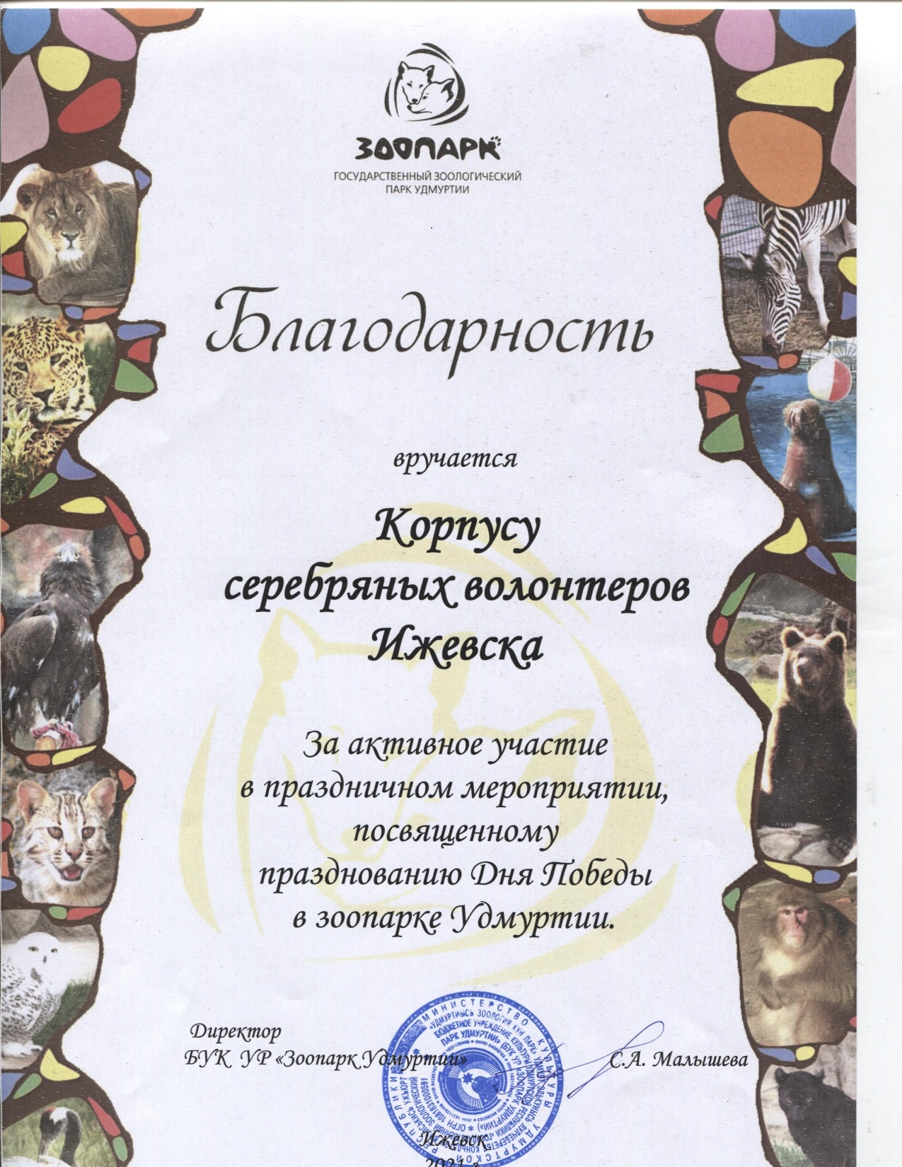 Способствовать повышению уровня культуры поведения и бережного отношения к обитателям посетителей Государственного зоологического парка Удмуртской Республики через создание и развитие добровольческого волонтерского корпуса, состоящего из 30 «серебряных» волонтеров.