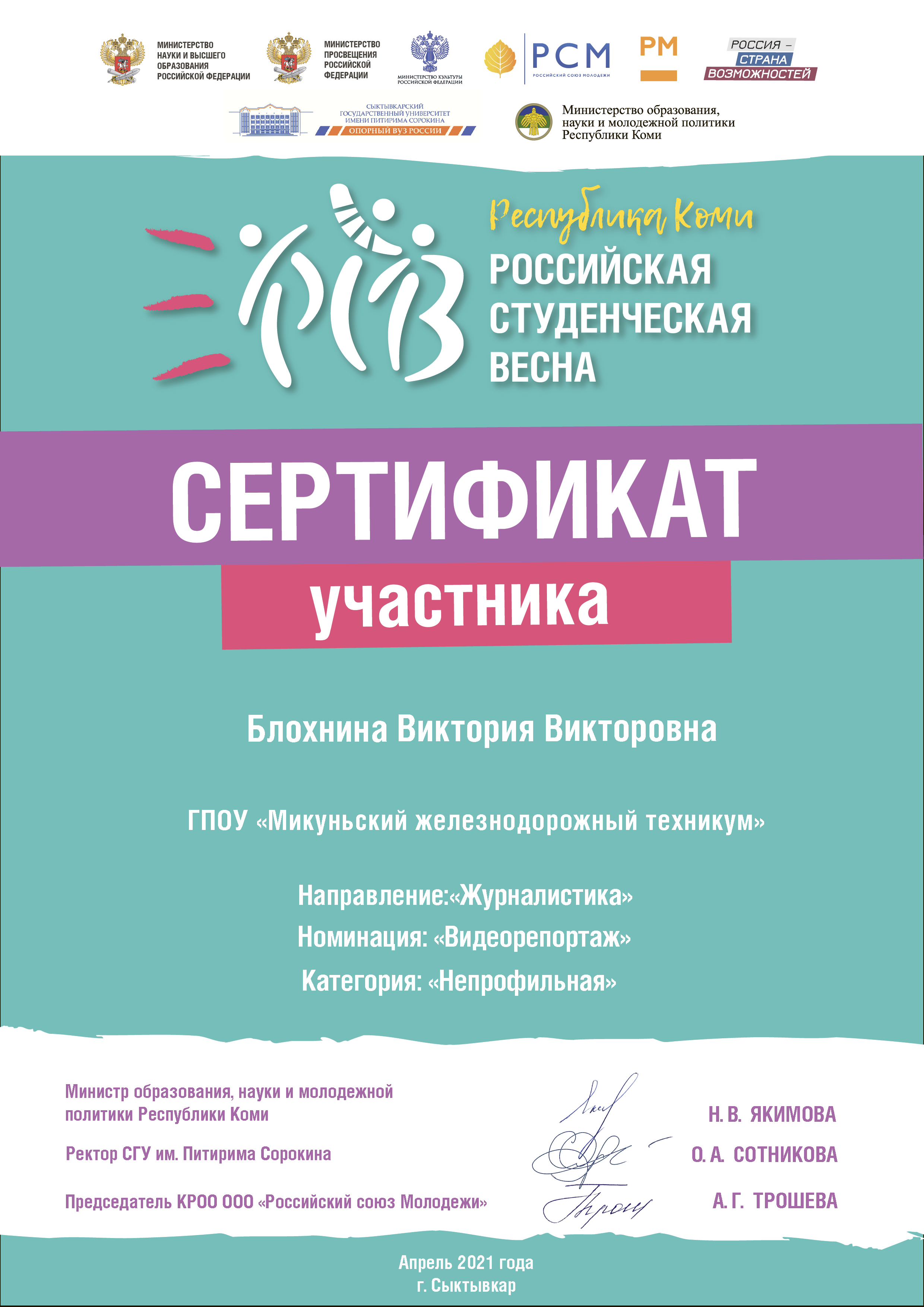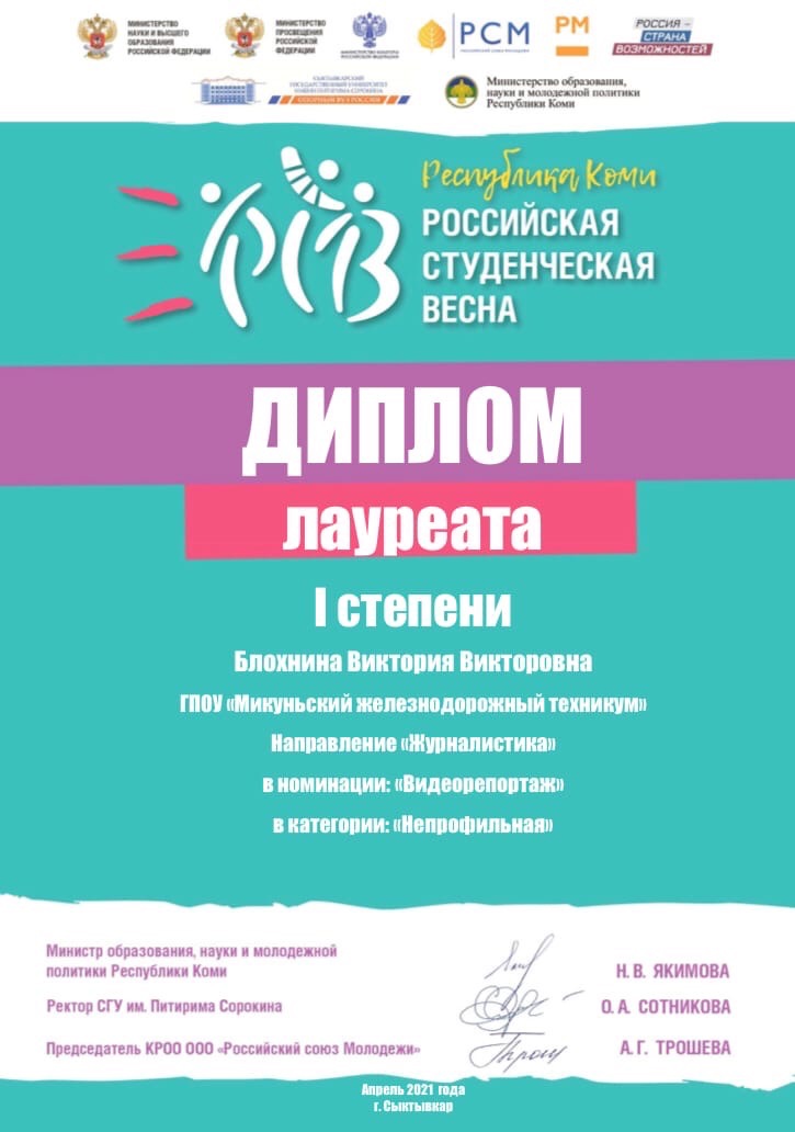 7) 1 место регионального конкурса «Студенческая весна»,
