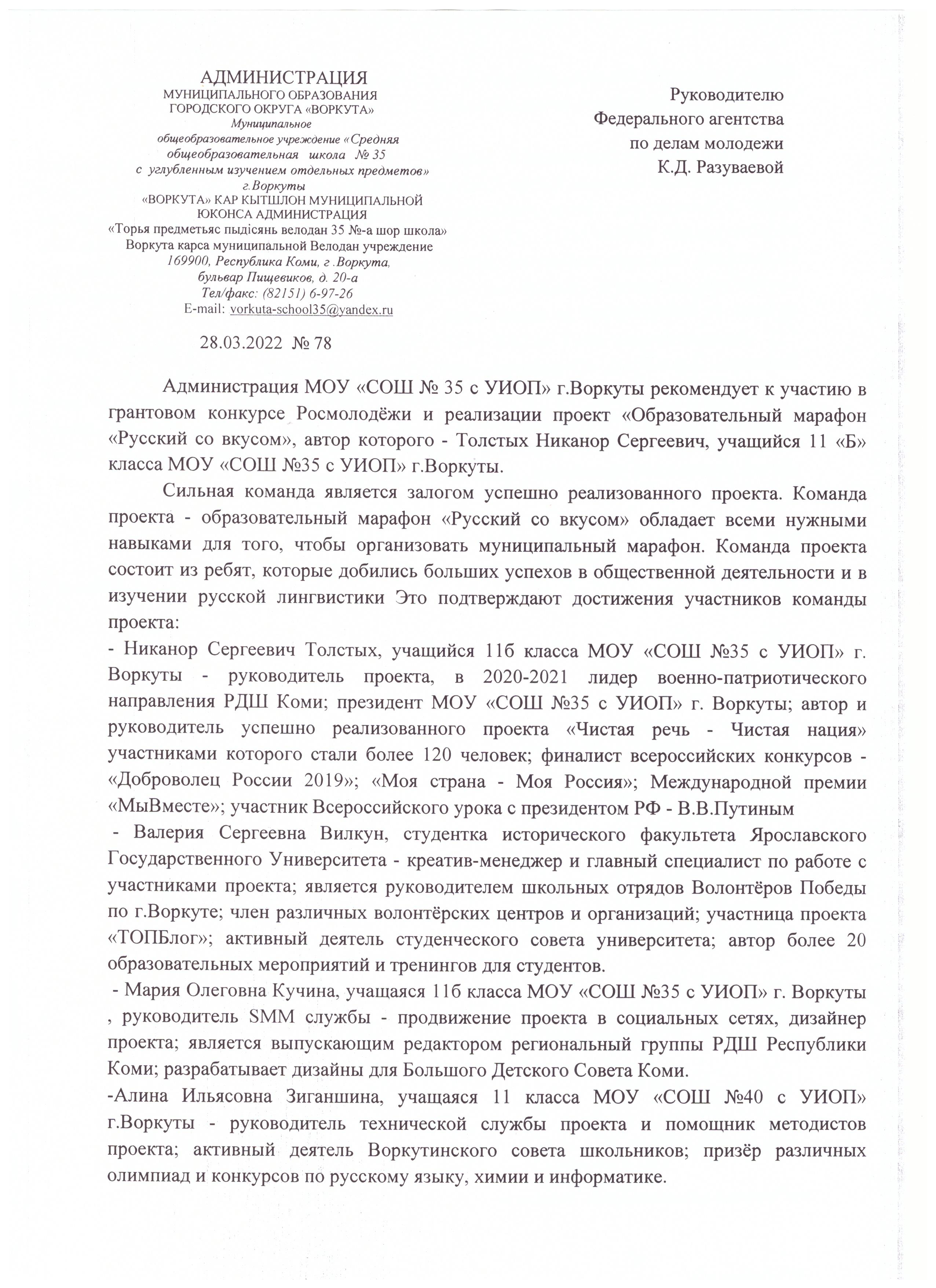 Наш Проект – образовательный марафон «Русский со вкусом!», направлен на популяризацию правильной русской речи и профилактику использования нецензурной лексики детьми ненецких оленеводов и детьми, оставшимися без попечения родителей 7-9 классов г.Воркуты.