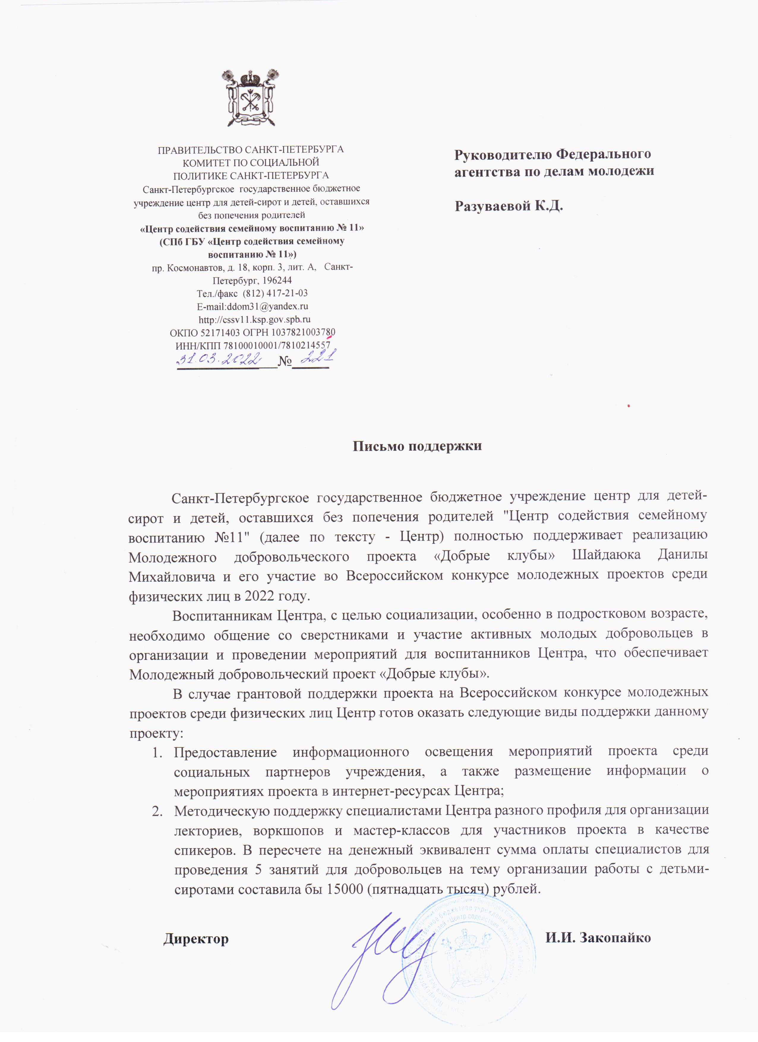 2. (06.2023 - 12.2024) В феврале 2023 года на базе проекта и МПЦ"Московский" был открыт Центр общественного развития «Добро.Центр в Московском» по франшизе АВЦ. В продолжении проекта "Добрые клубы" (после окончания соглашения с Росмолодежью) все методики и успешные практики работы продолжат реализовываться на базе «Добро.Центра в Московском» и масштабироваться в другие районы СПб и регионы РФ. Будет разработана программа развития "ДоброЦентра", что вовлечет в социальные практики новых добровольцев.