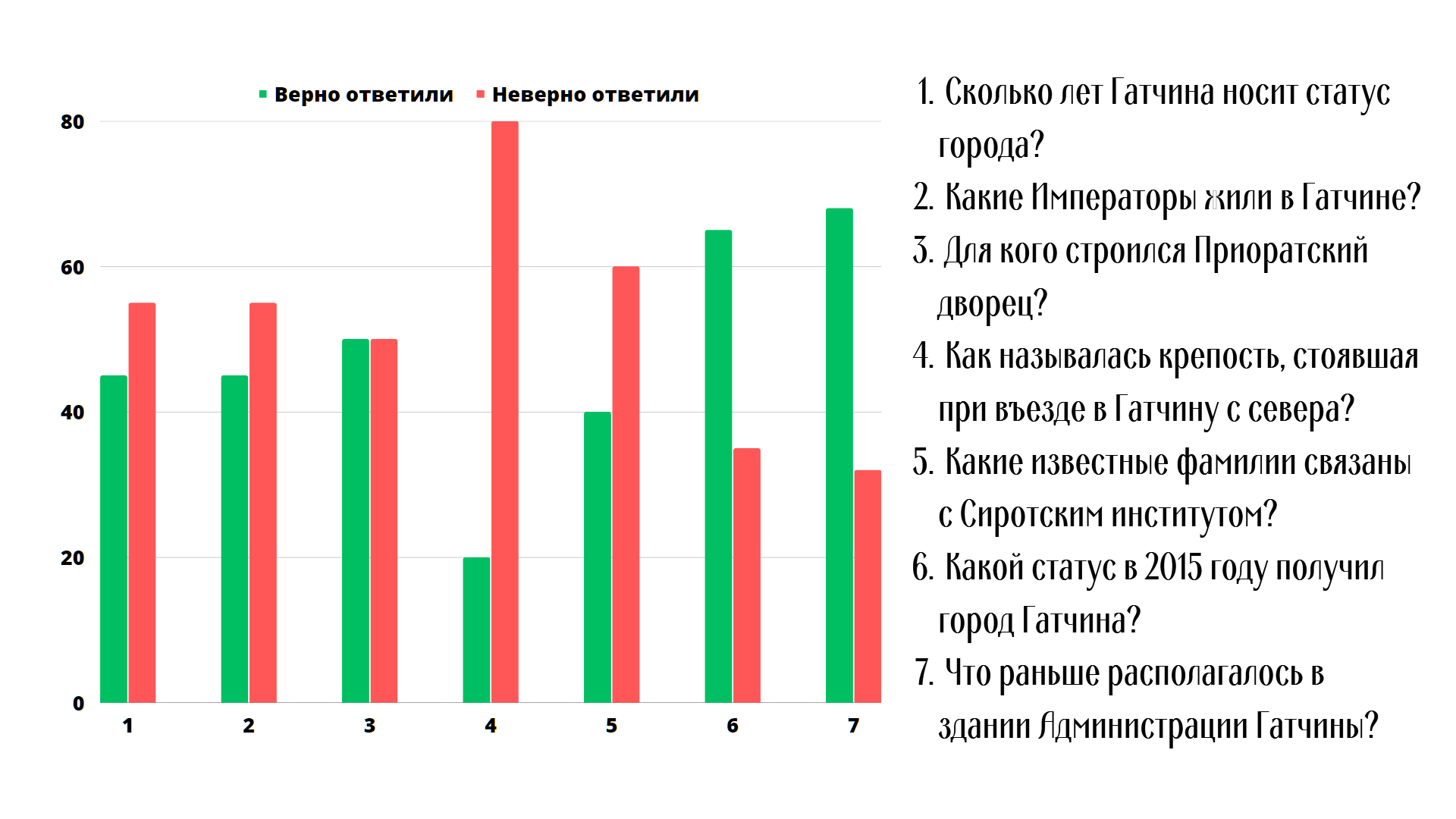 1. Провести опрос среди учеников школы и установить уровень знаний истории города, заинтересованности к изучению истории, а также узнать интересующий формат преподнесения информации (на базе Гатчинской гимназии им. К. Д. Ушинского).