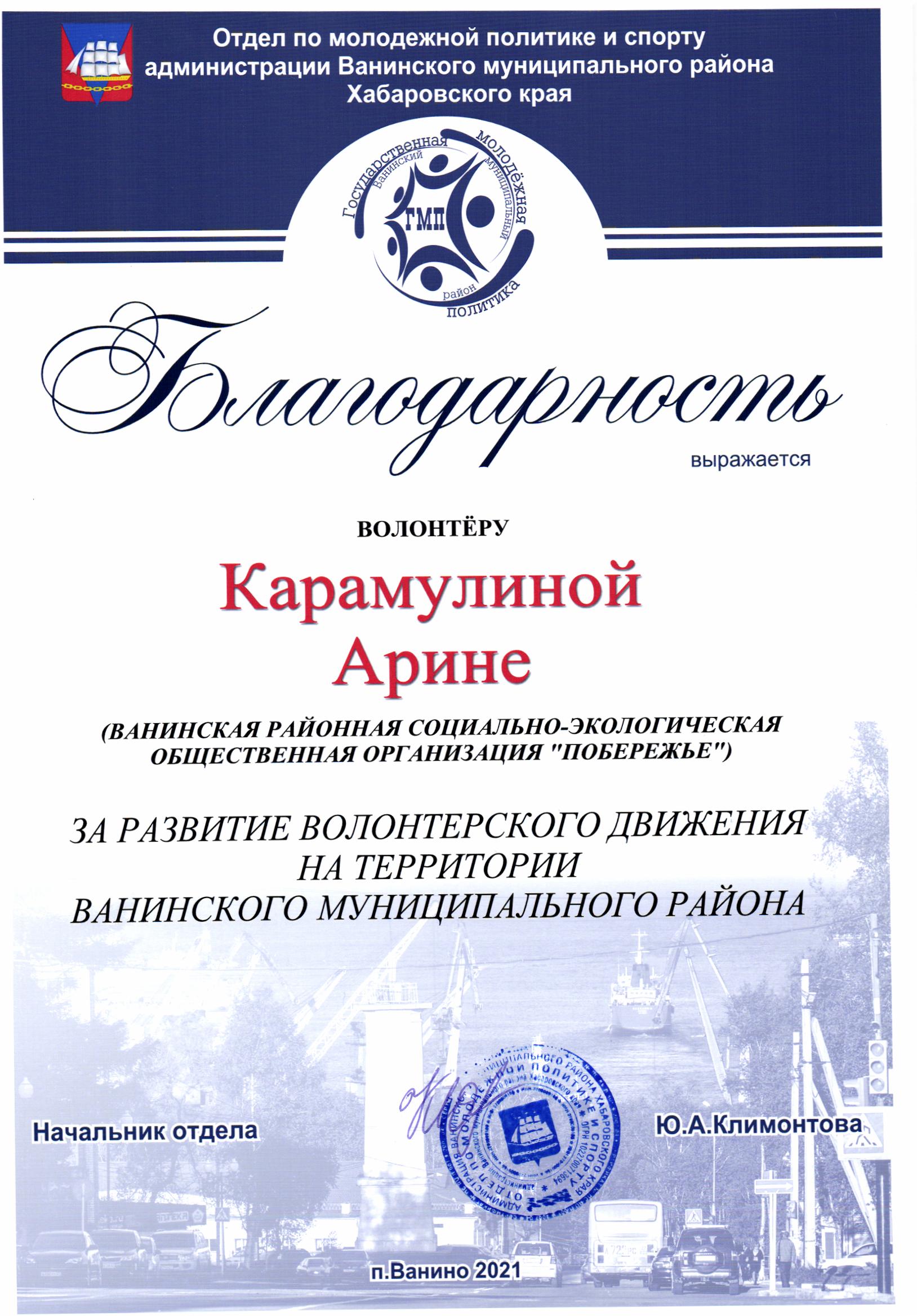 60 человек заявили на платформе dobro.ru о готовности помогать организации в проведении волонтерских акций в дальнейшем. 106 человек старше 12 лет, проживающих в п.Ванино, п.Октябрьский, п.Токи, п.Датта, п.Монгохто, п.Усть-Орочи, п.Тумнин, зарегистрированных на платформе dobro.ru, попробовали себя в различных практиках волонтерства, акциях, проведеных организацией совместно с жителями в посёлках в поселках Ванинского района Хабаровского края. Волонтёры приобрели новый опыт взаимодействия в проектных командах с экспертами. Сформировали новые связи для совместной работы. Получили поддержку и признание от местных органов самоуправления. Стали увереннее проявлять инициативу, предлагать собственные решения по вопросам местного сообщества.