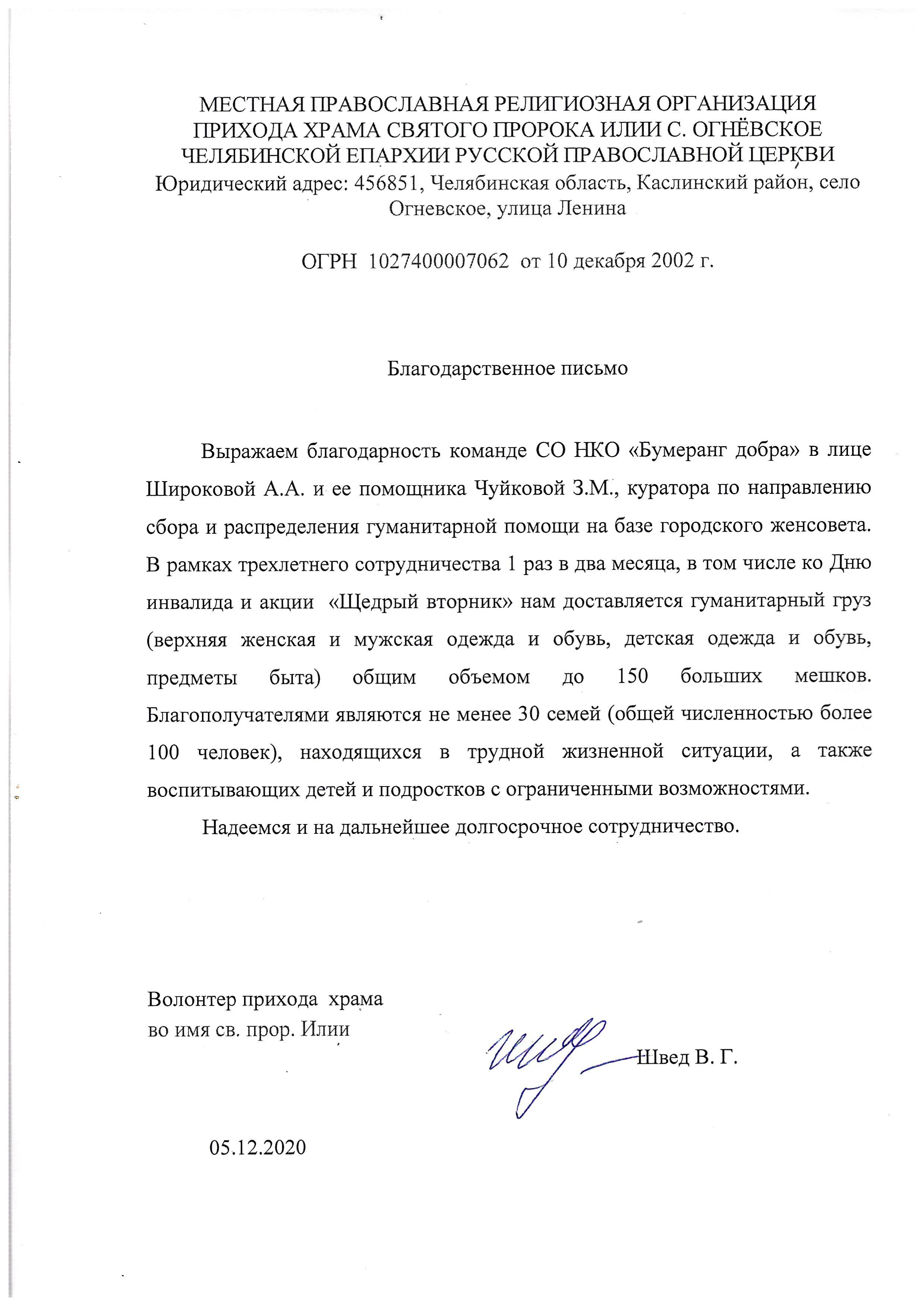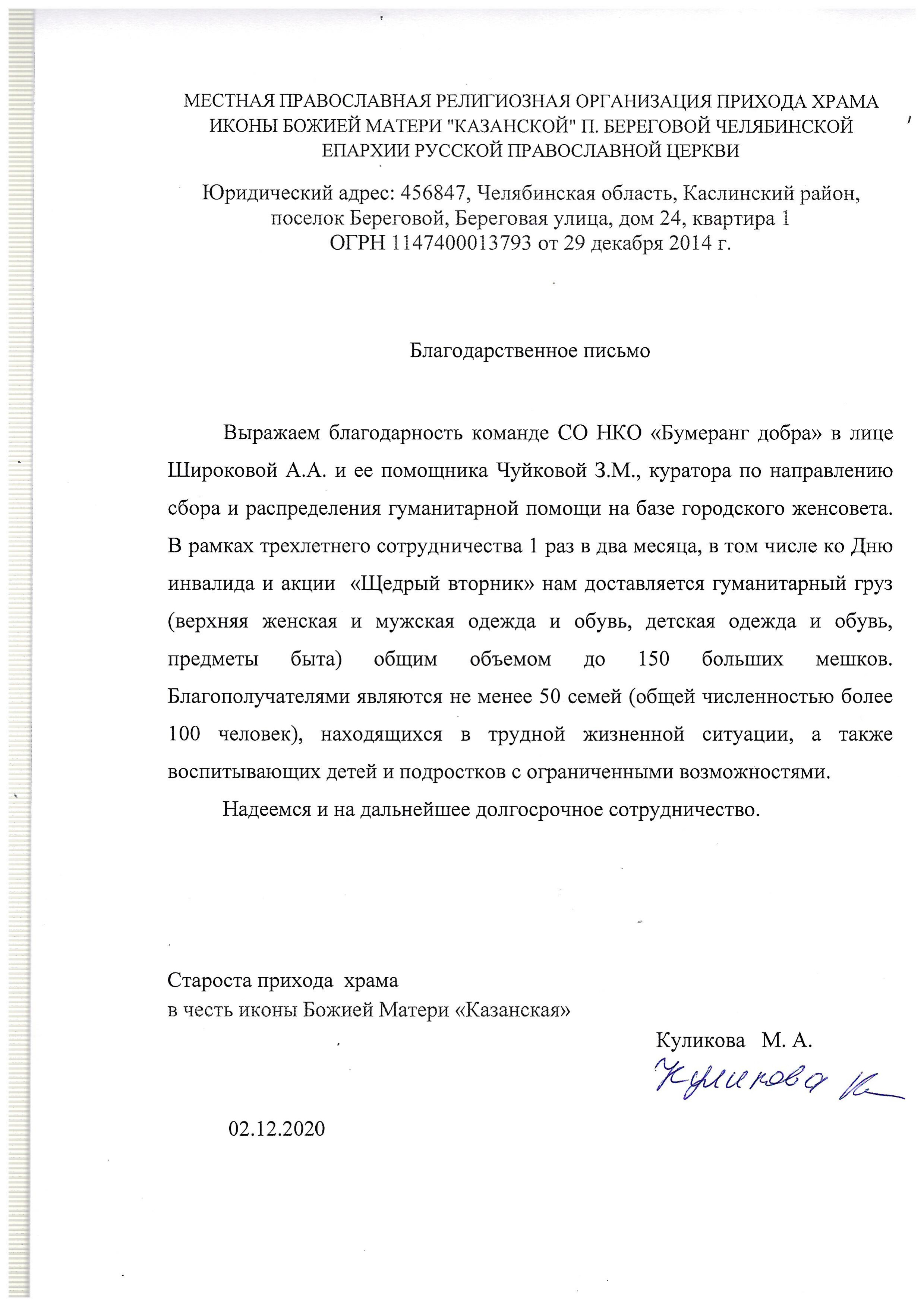 По статистике (ведется журнал учета) в месяц более 400 человек посещает вещевой Пункт приема и распределения, один раз в два месяца отравляется грузовая машина и еженедельно легковые автомобили с вещевой помощью в близлежащие населенные пункты. Эти показатели имеют тенденцию к росту, что обусловлено экономическим положением как в стране, так и в городе.