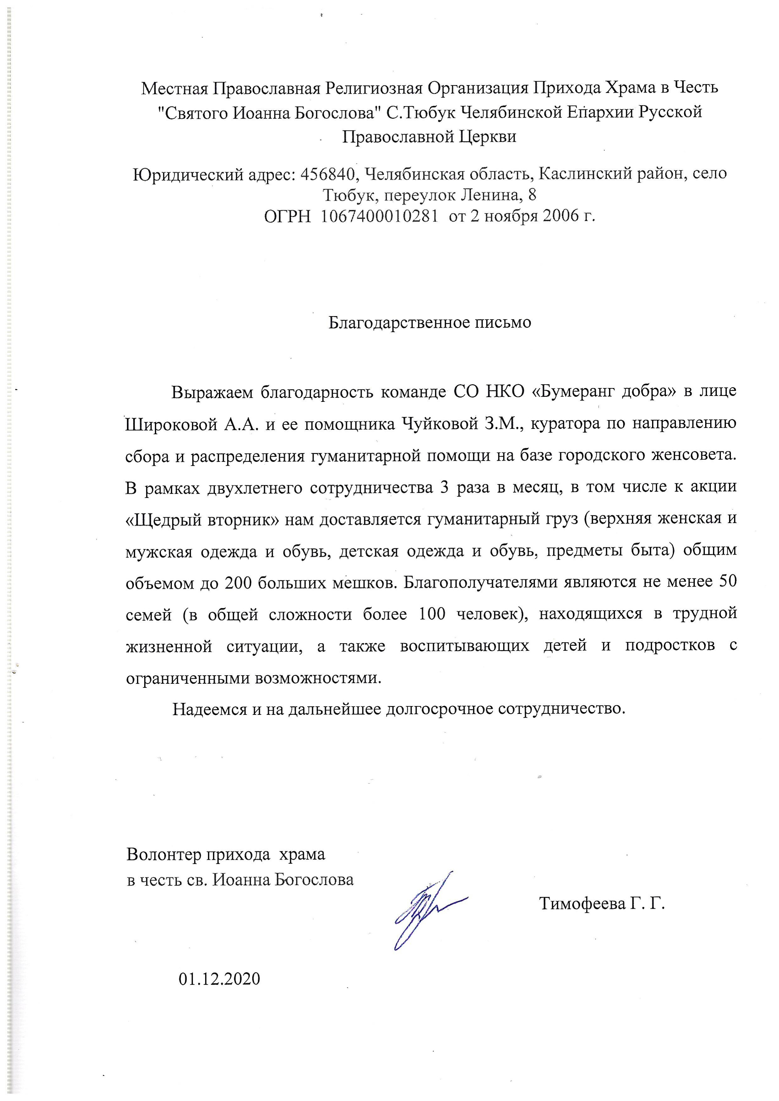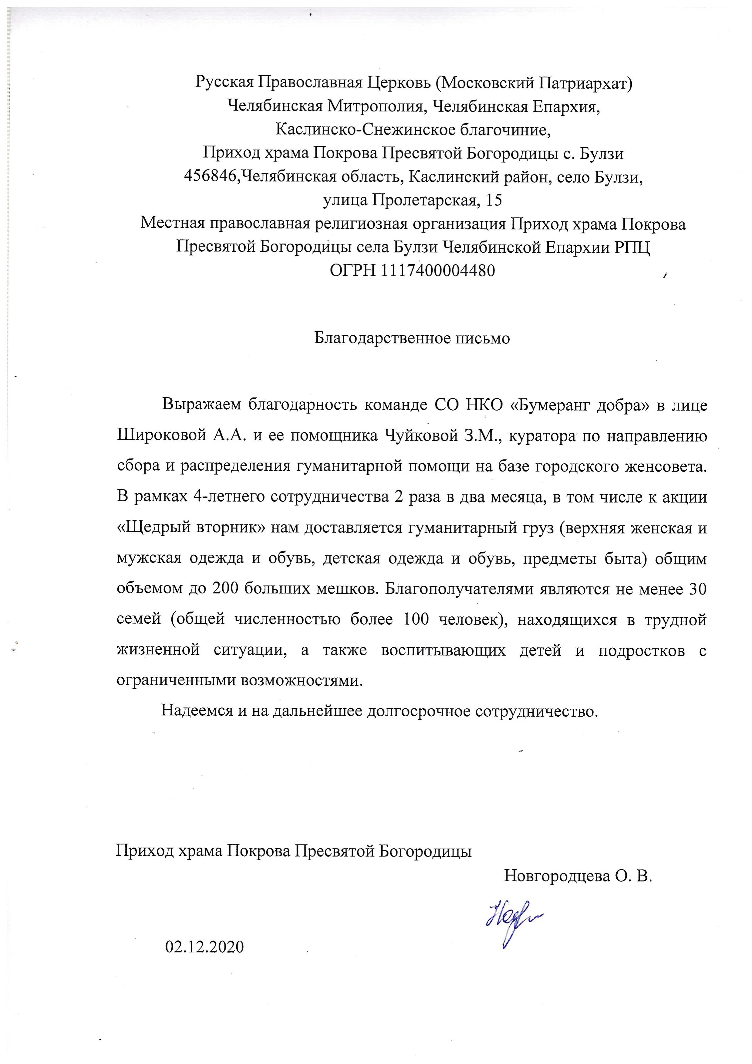 В результате значительно экономится бюджет благополучателей; реализуется потенциал «серебряных» волонтеров; дарителям предоставляется возможность совершить благое дело; б/у одежда, обувь,книги и предметы быта обретают новых хозяев, а не отправляются на мусорные полигоны; непригодные к носке меховые изделия передаются приютам животных для подстилок, х/б ветошь – на обтир автотранспорта, трикотаж – в творческие мастерские; макулатура, батарейки и пластик – на переработку.