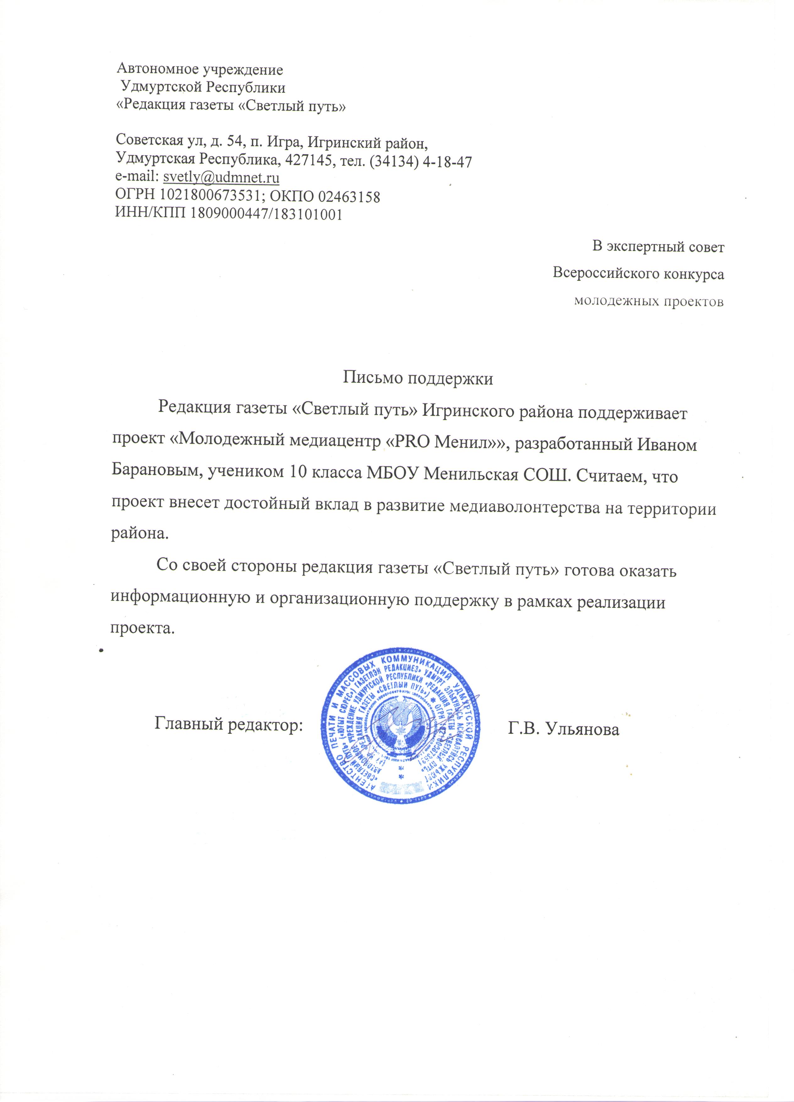 Проект "Молодежный медиацентр "PRO Менил"" будет реализаован на базе МБОУ Менильской СОШ течении 2022 года. Инициатива рашает проблему пассивности молодежи и ее равнодушия к истории и современному развитию села Менил. Суть проекта - создание волонтерского молодежного медиацентра. Этапы реализации проекта: