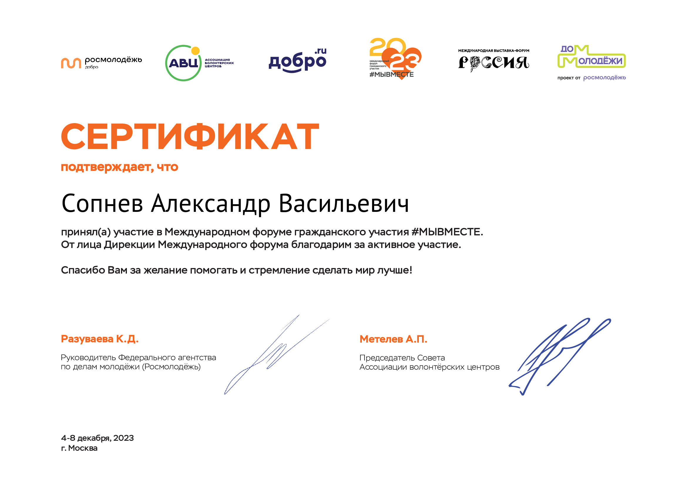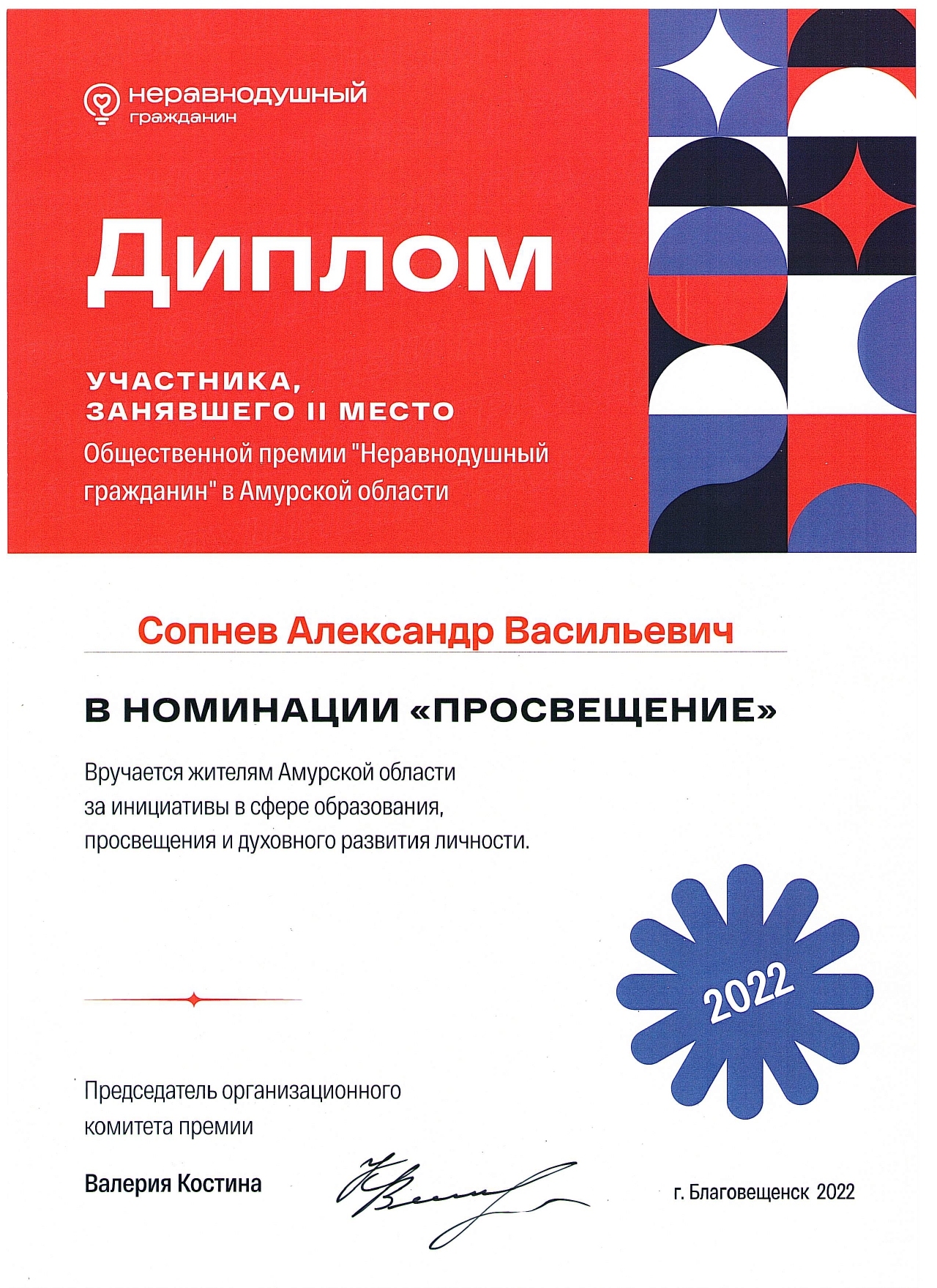 Ресурсный Центр является полуфиналистом Всероссийских конкурсов волонтерских инициатив «ДОБРОВОЛЕЦ РОССИИ - 2019», «ДОБРОВОЛЕЦ РОССИИ - 2020», Международных Премий #МЫВМЕСТЕ в 2021, 2022, 2023 годы. Победитель конкурса «Лучшие практики добровольчества (волонтерства) в Амурской области» в 2021 году. Победитель конкурса социально значимых поступков жителей Амурской области «Поступки и люди» в 2021 году в номинации «Гражданская позиция». Победители конкурса «Добровольцы Амура – 2021» в номинации «Организатор добровольчества». Финалист Общественной Премии «НЕРАВНОДУШНЫЙ ГРАЖДАНИН» в Амурской области в номинации «ПРОСВЕЩЕНИЕ» в 2022 году.