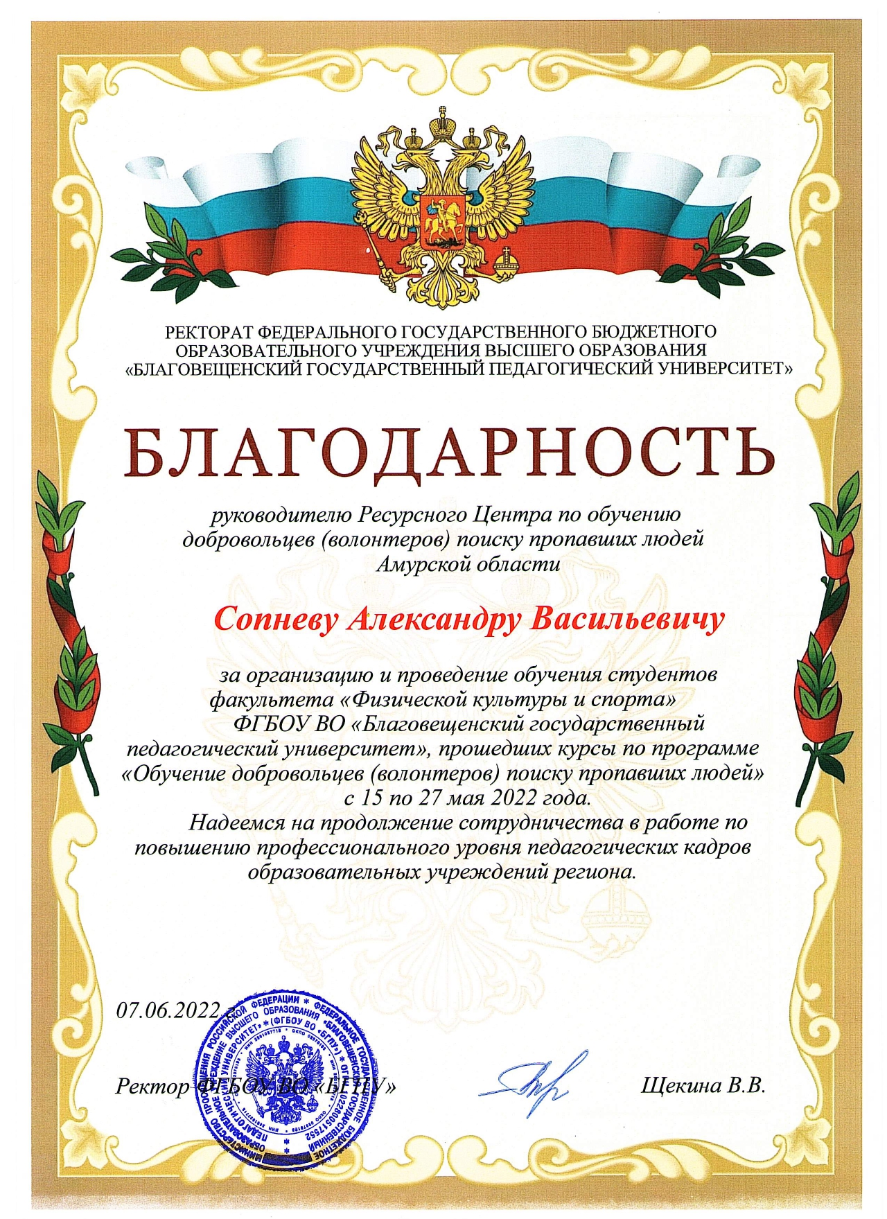 Повышение профессиональной квалификации добровольцев, а также привлечение и поддержание интереса молодежи к добровольческой поисковой деятельности на территории Амурской области.