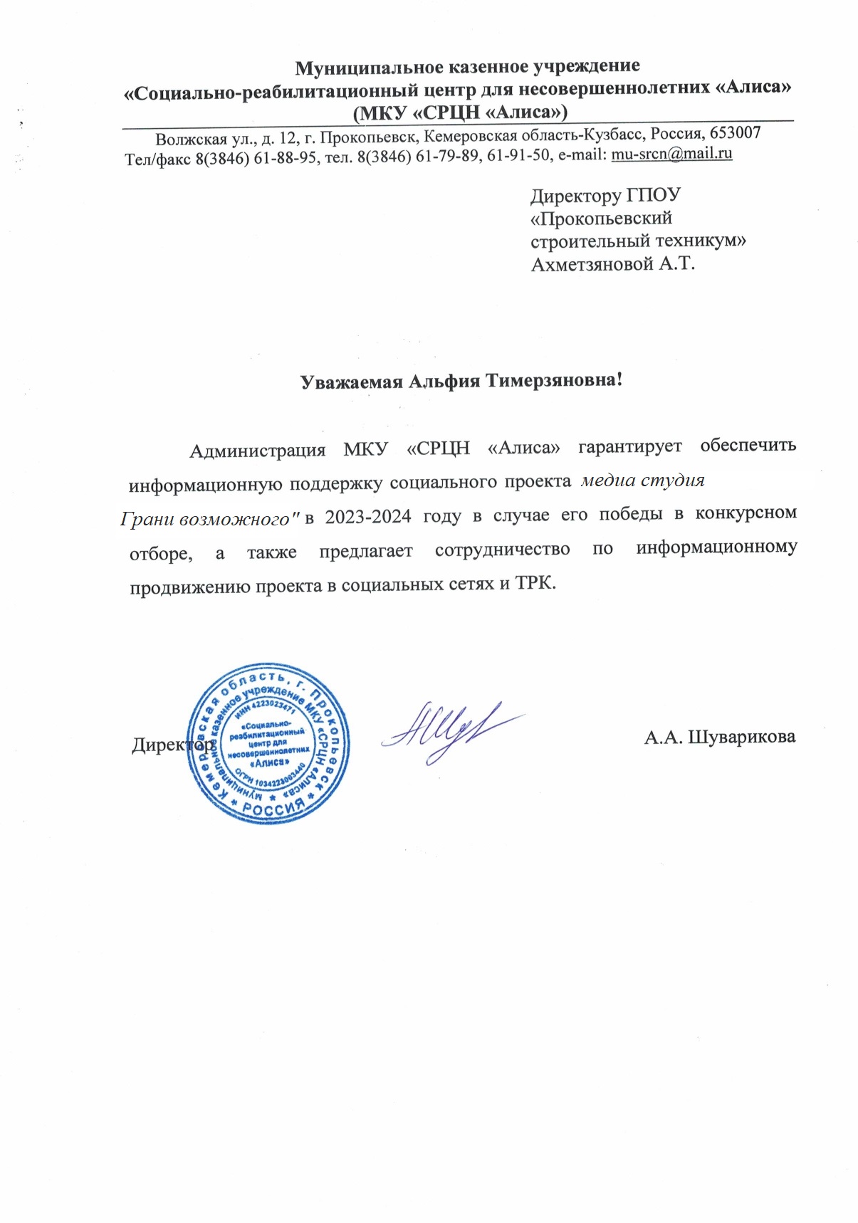 создание в 2023-2024 году медиа центра "Грани возможного" для лиц с ОВЗ и инвалидностью в возрасте 14-35 лет для развития их творческих, коммуникационных способностей, а также физической и психоэмоциональной адаптации и снижения социальных барьеров.