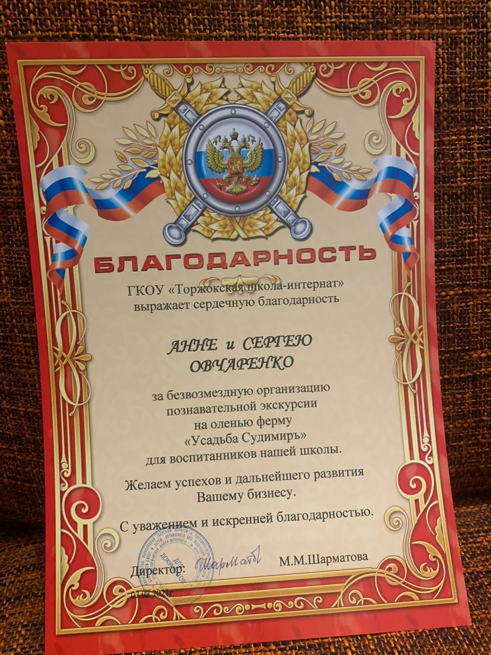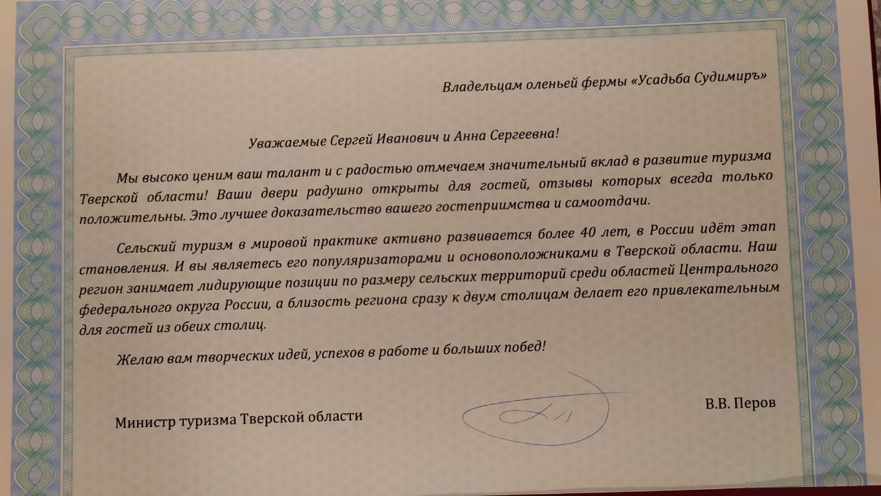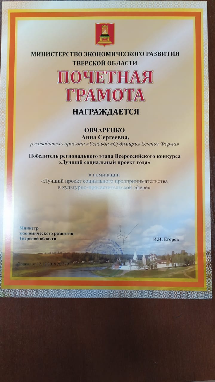 Руководители проекта имеют ряд благодарностей по проведению экскурсий: от ГБУ «Комплексный центр социального обслуживания населения Калининского района», ГКУ «Тверская школа интернат №2», Министерства Туризма Тверской области и огромное количество отзывов от посетителей фермы.