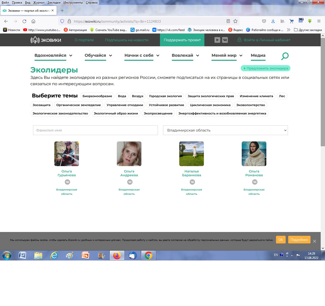 - 90 человек приняли участие в экологических акциях, количество проведённых экологических акций 4 (экодвор, акция "Передай экоулыбку", экотеатр, экоэстафета,плоггинг территорий Оки, Волги). Проект вышел за пределы Владимирской области - проводилась уборка после ураганов в Ивановской, Костромской и Нижегородской области.