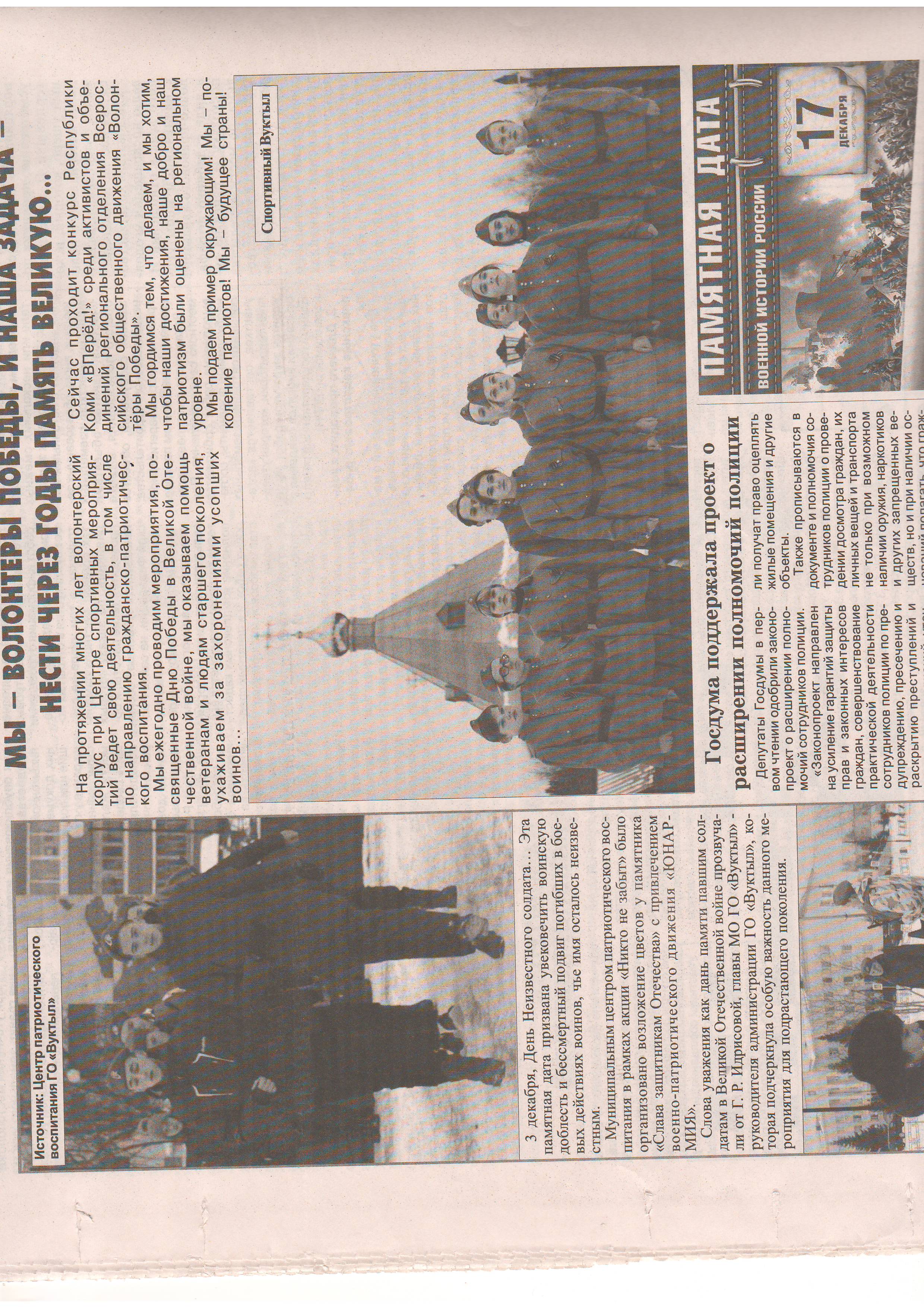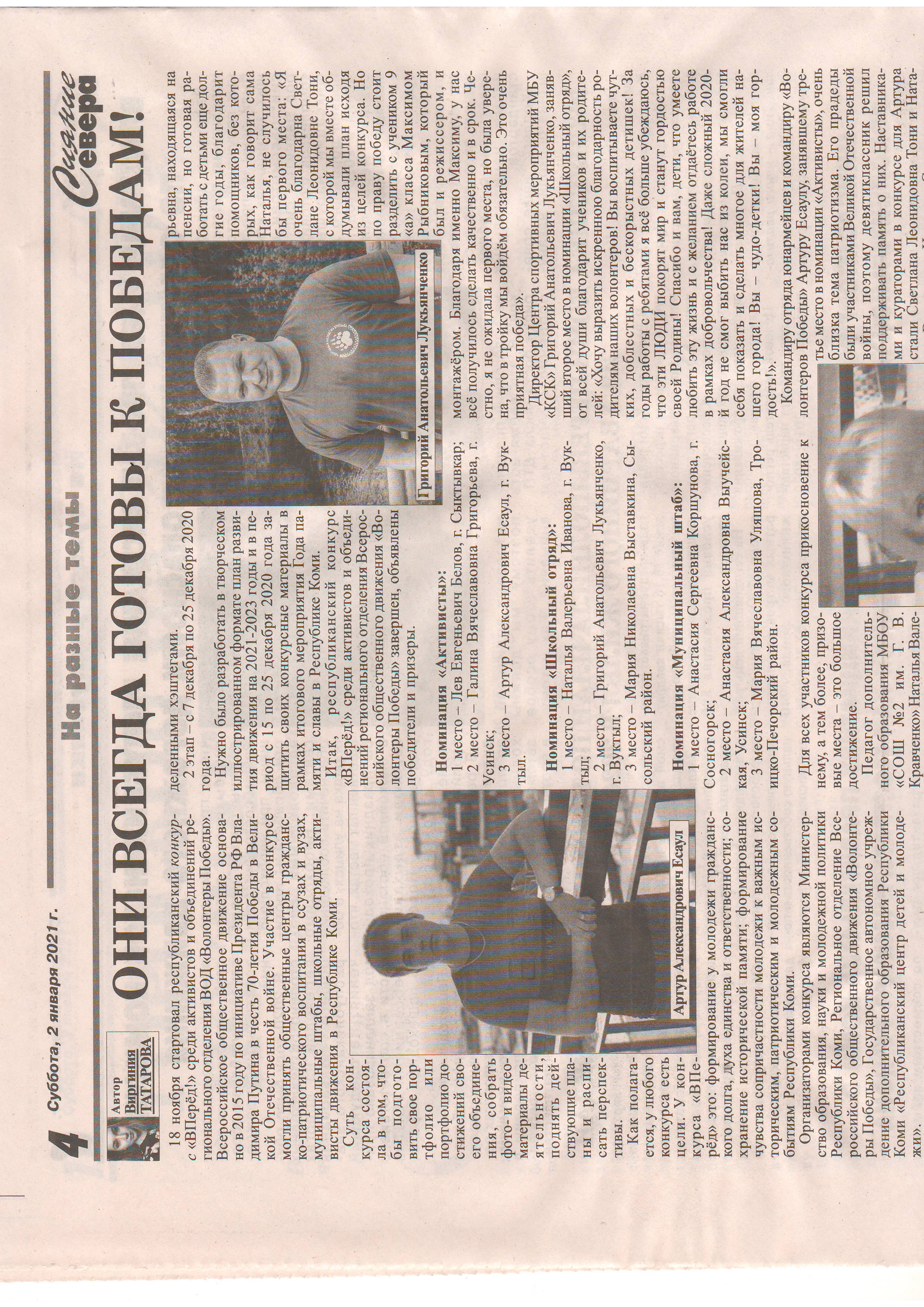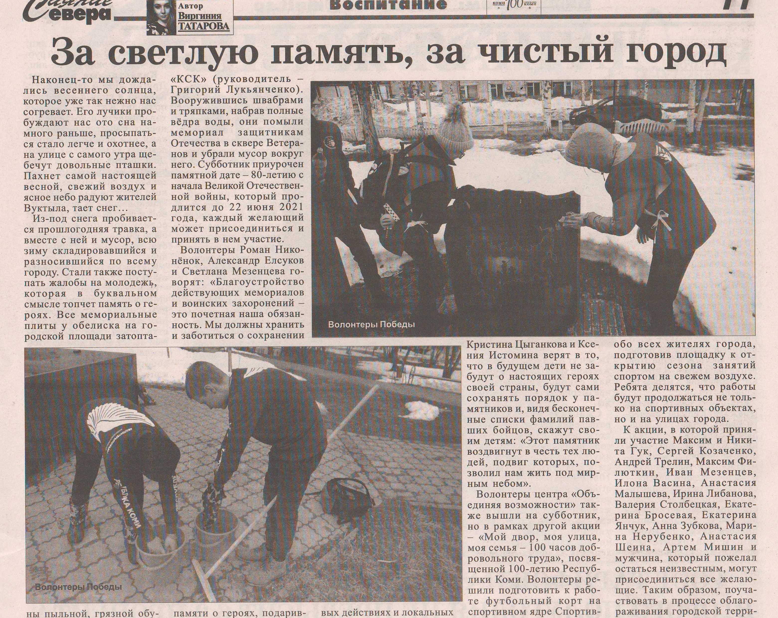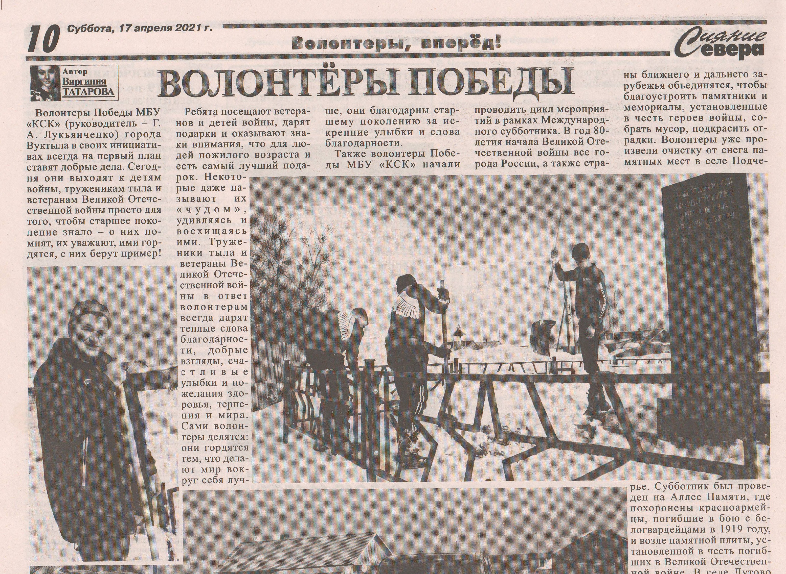 В рамках проета было привлечено 167 волонтёра, которые смогли обучиться по СМИ-направлению. Н апрактике добровольцы оттачивали свои навыки, снимая видеосюжеты практически со всех социально-значимых мероприятий города Вуктыла и 4 сельских пнктов. Команда создаёт свои рубрики, снимает видео клипы и поздравления с памятными датами, берут интервью у ветеранов Великой Отечественной войны и участников СВО. Начинающие медийщики записывают видеосюжеты ко всем крупным патриотическим и значимым для нашей Родины праздникам. Пишут статьи для местной газеты, видео материал берут для трансляции местное телевидение и региональный телеканал "Юрган".