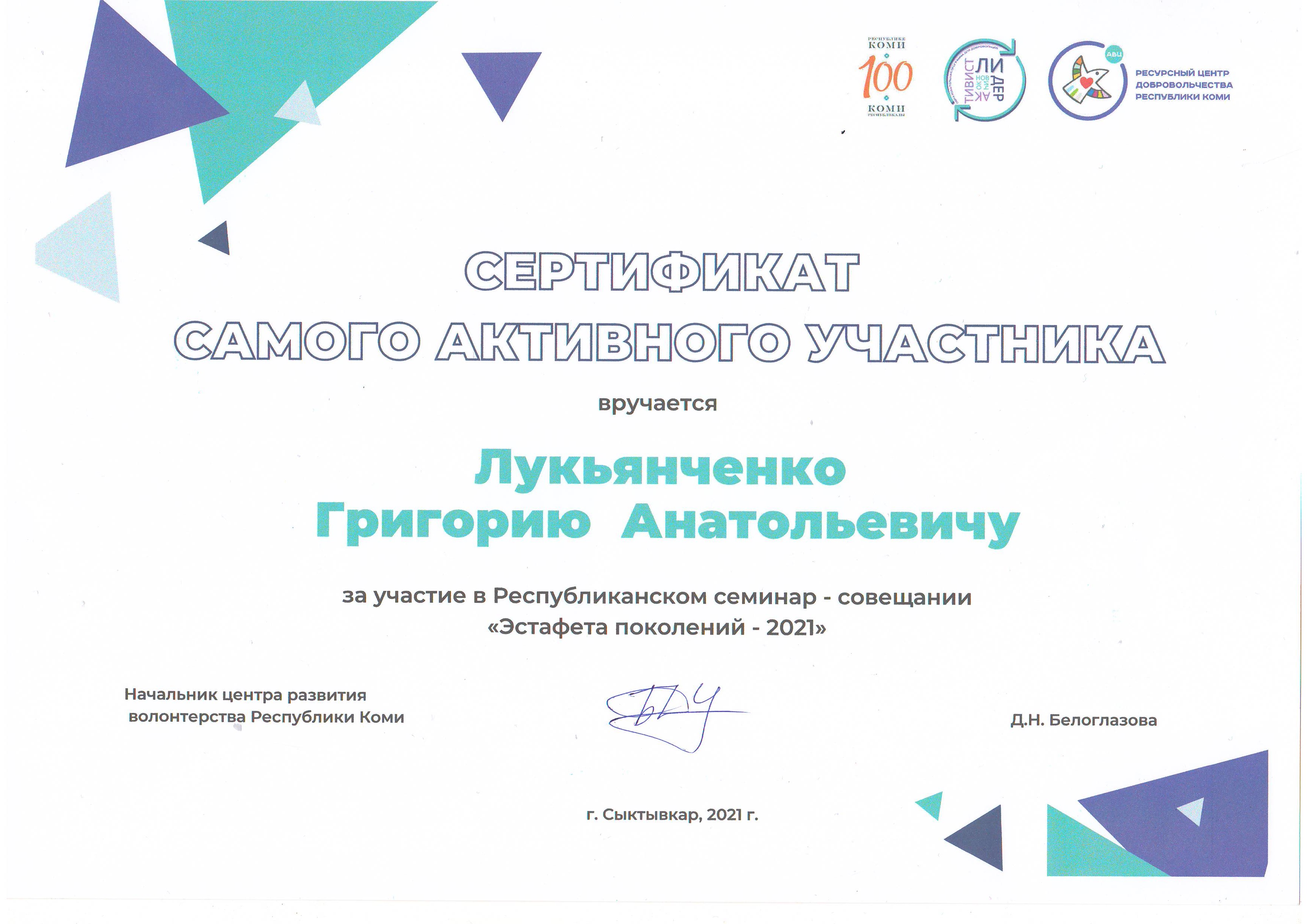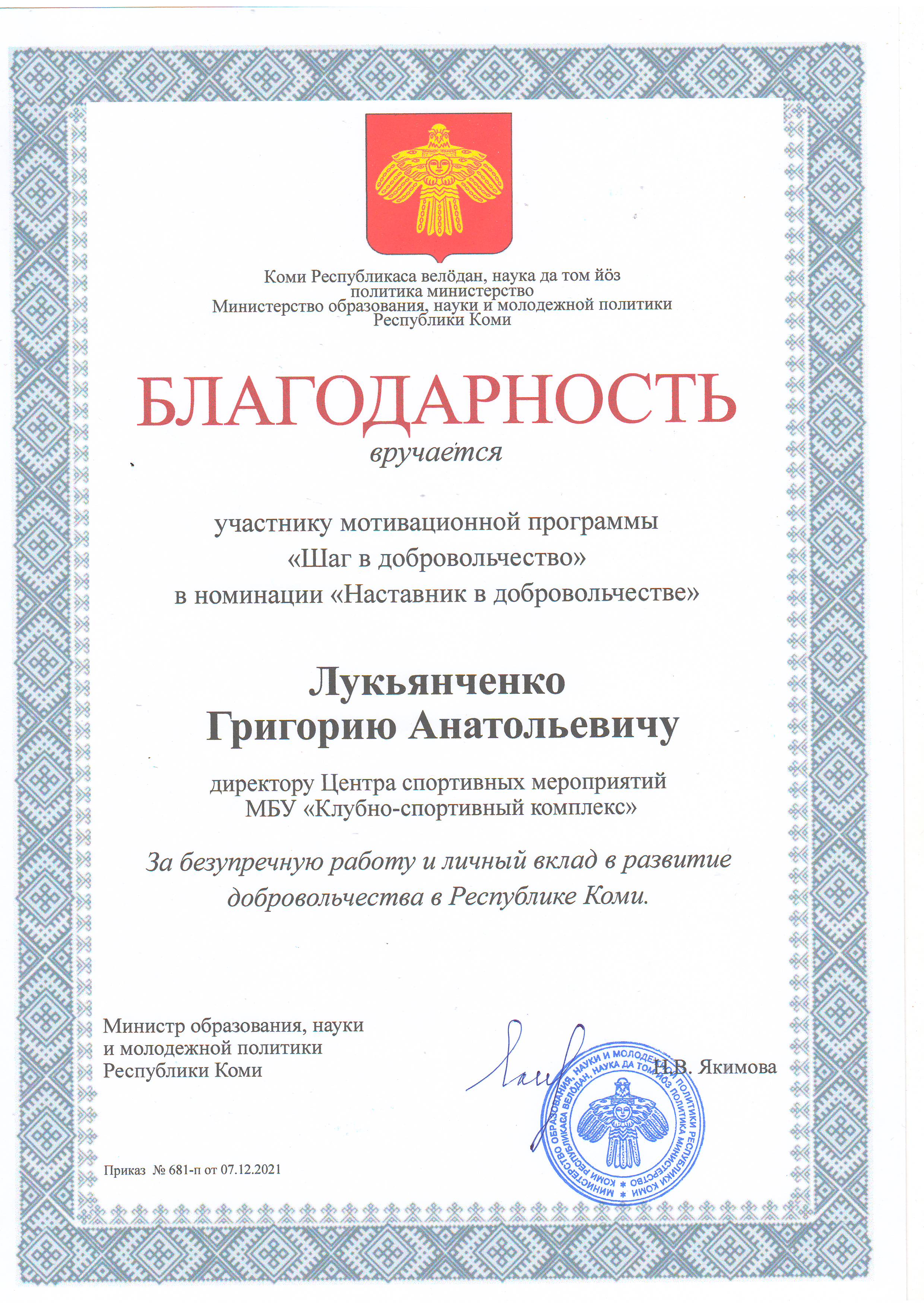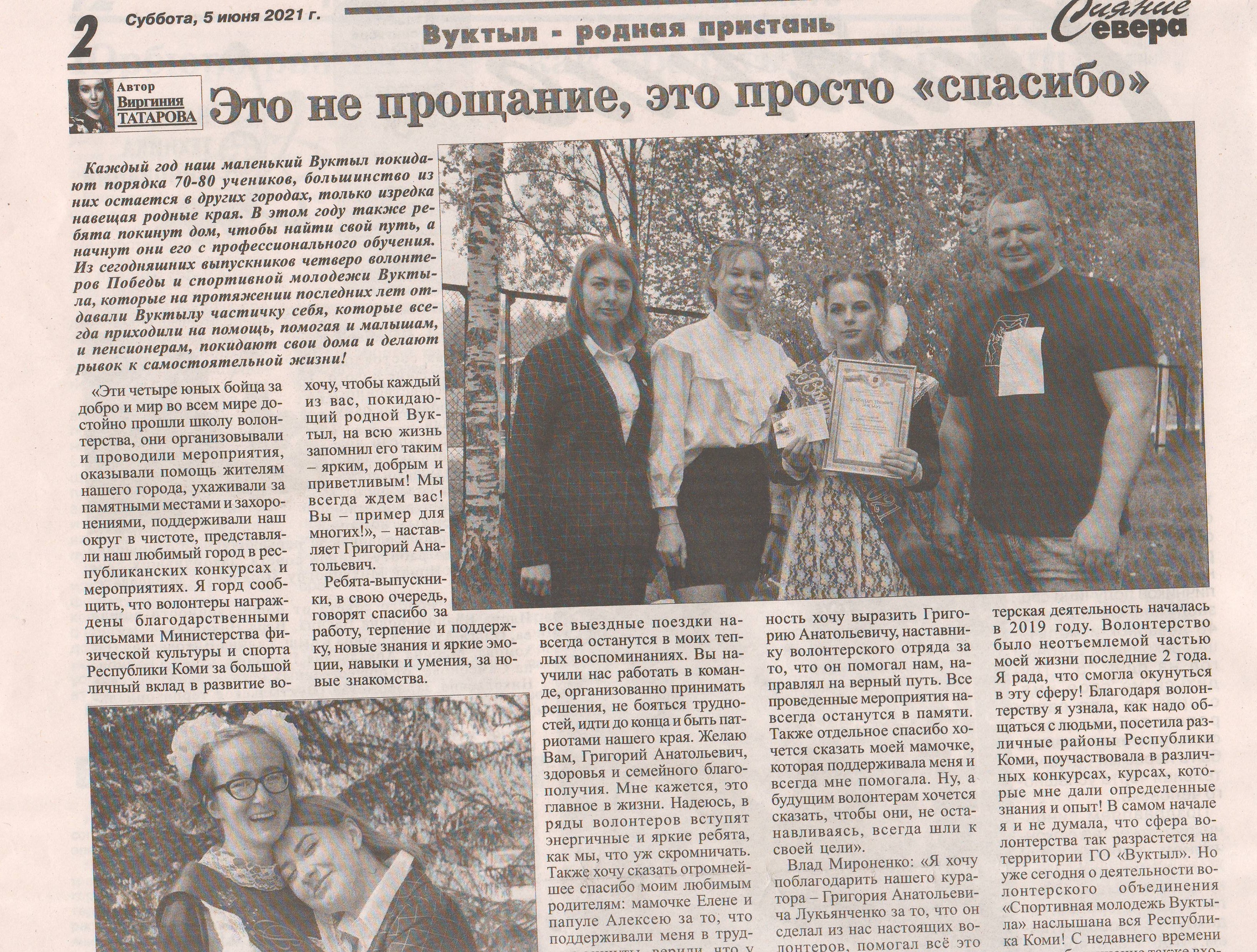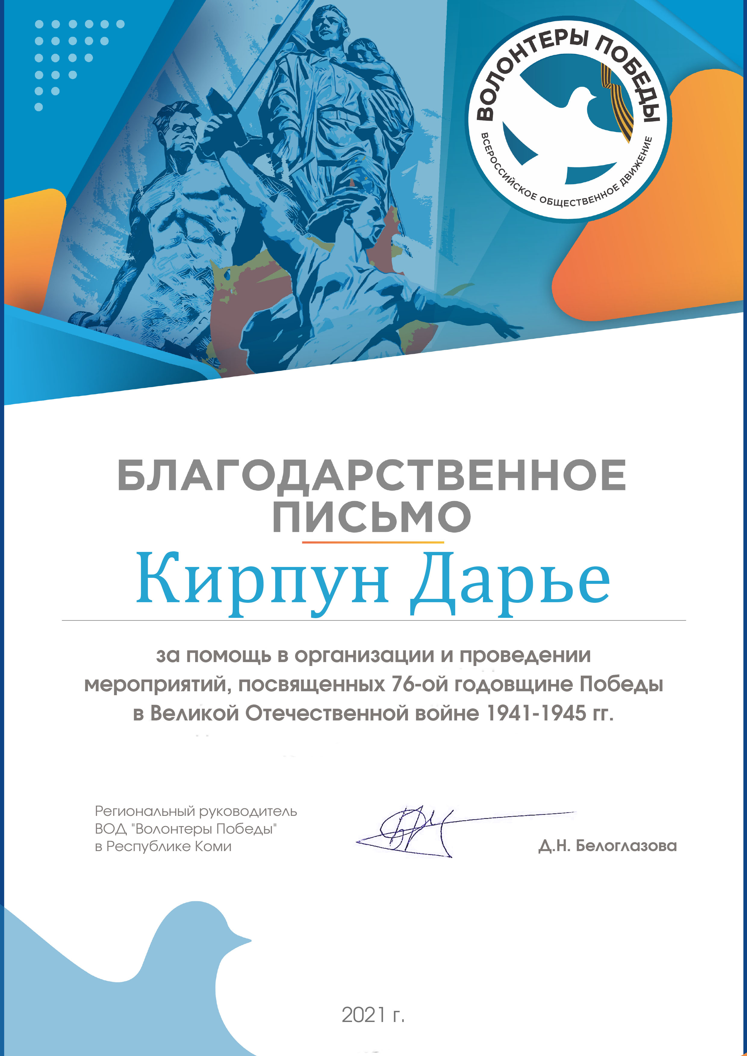 - Победители открытого конкурсного отбора на уровне Республики Коми в рамках Всероссийского конкурса лучших региональных практик поддержки волонтерства «Регион добрых дел» 2021 года;