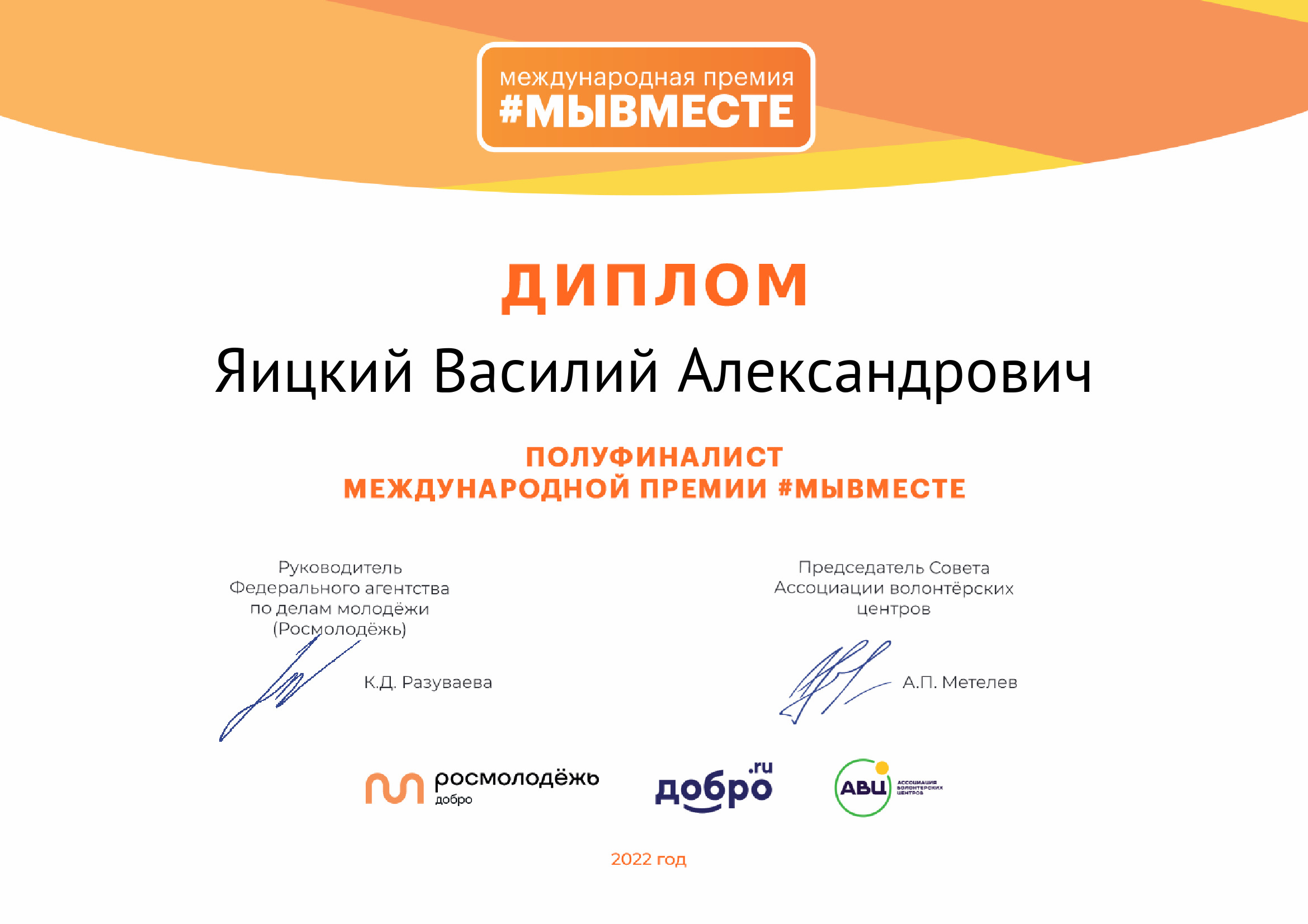 Цели и задачи проекта, реализация первого этапа была высоко оценена и стала лауреатом первой национальной премии ФАДМ "Патриот-2021", полуфиналистом премии МЫВМЕСТЕ - 2022года.
